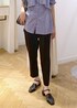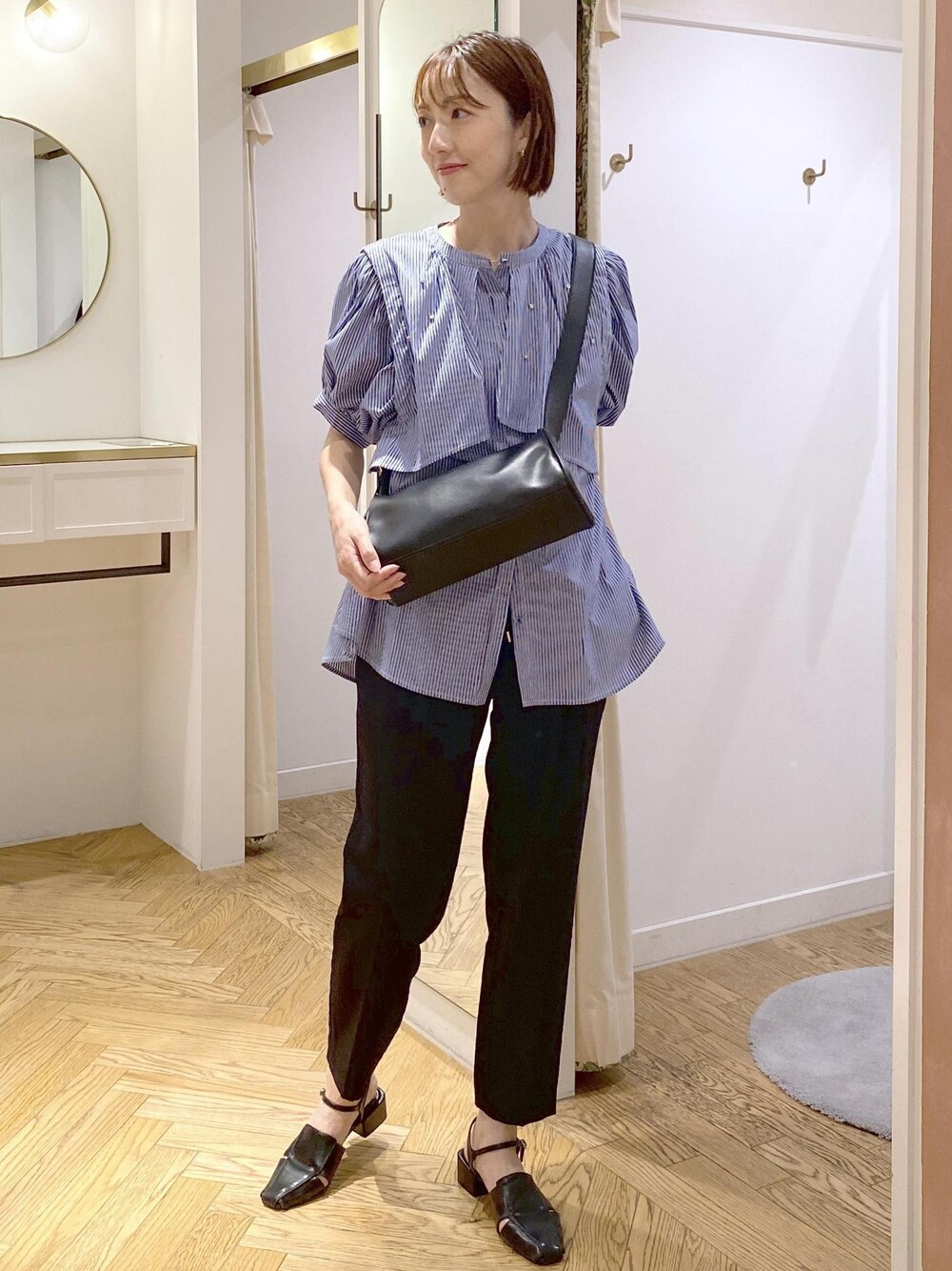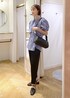 スッキリテーパードパンツにお尻もふんわり隠れる長めのチュニックブラウスを合わせた大人カジュアルスタイルです! ラインストーン付きなので一枚で華やかなブラウス⭐︎ 他はブラックでシンプルに合わせて大人っぽくスタイリングしました!