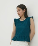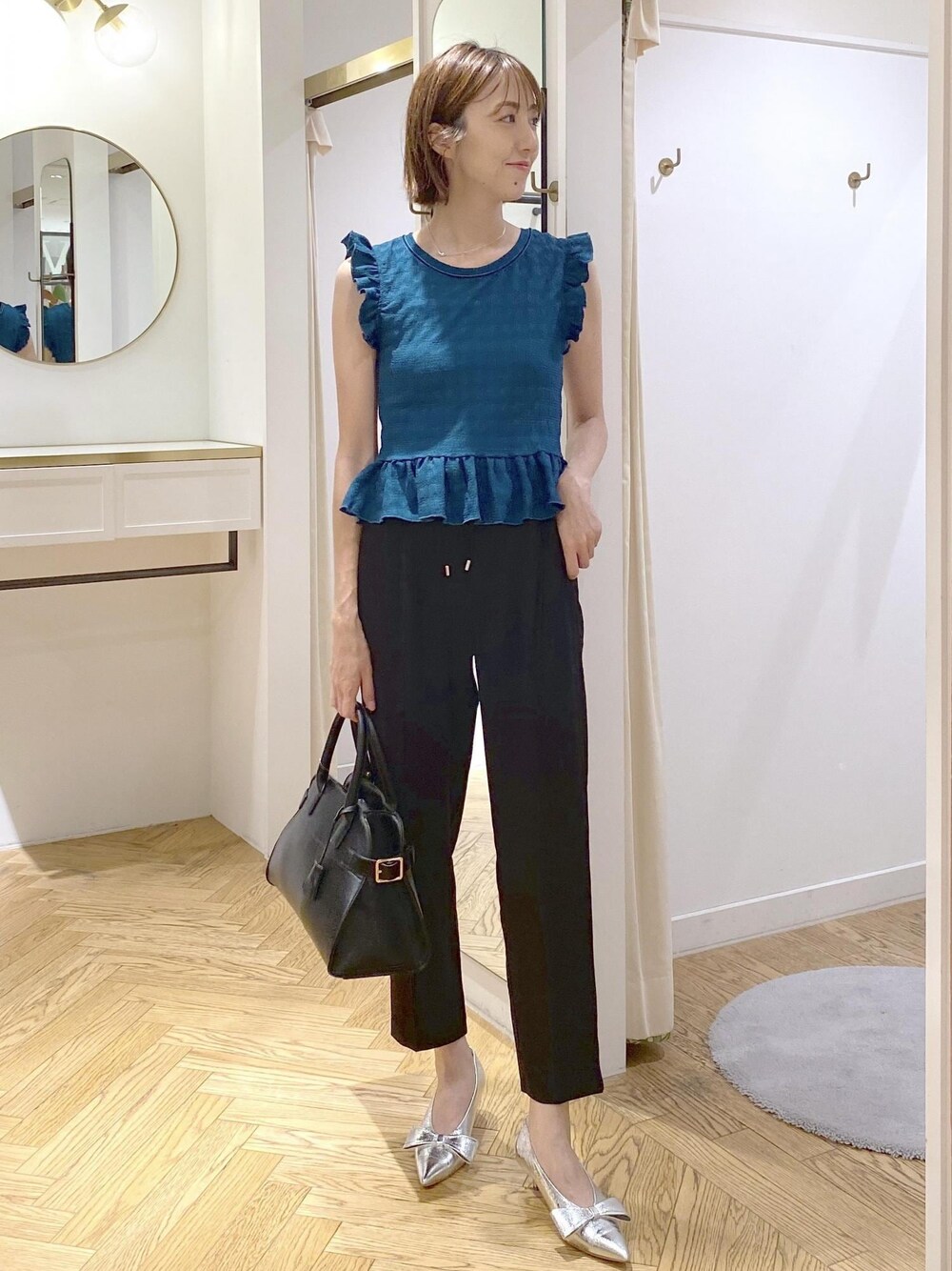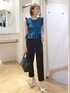 お仕事着にもオススメなフリルトップスが入荷しました。 キレイめテーパードパンツと合わせて夏の通勤コーデにしました♪