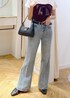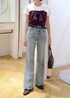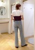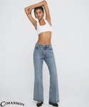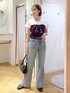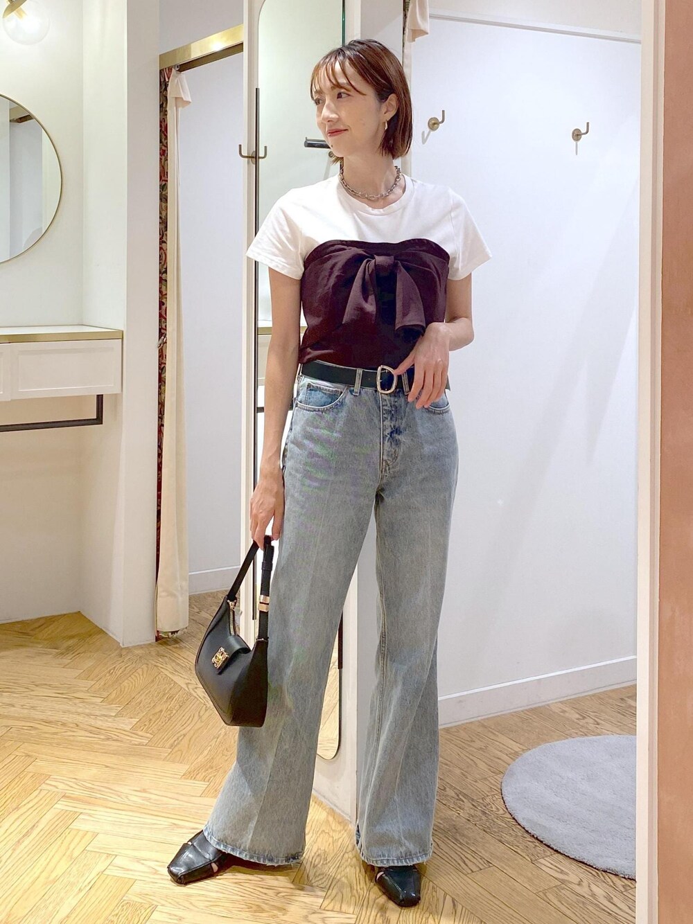 シマロンのフレアデニムでヘルシーカジュアルスタイルです! トップスはドッキング風のTシャツなので一枚でオシャレ見えします⭐︎