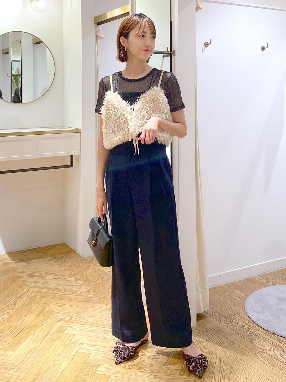シアー×ファービスチェで周りと差をつける女子会コーデです! インナーも細ストラップのキャミなので、バックスタイルも抜け感を演出⭐︎