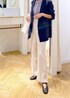 まだまだ残暑が続きますが、そろそろ秋の通勤スタイルも気になりますよね! ジャケットを脱げばフレンチスリーブのブラウスなので、今から初秋まで長く着用できる通勤スタイルです⭐︎