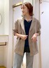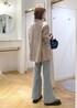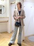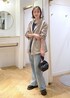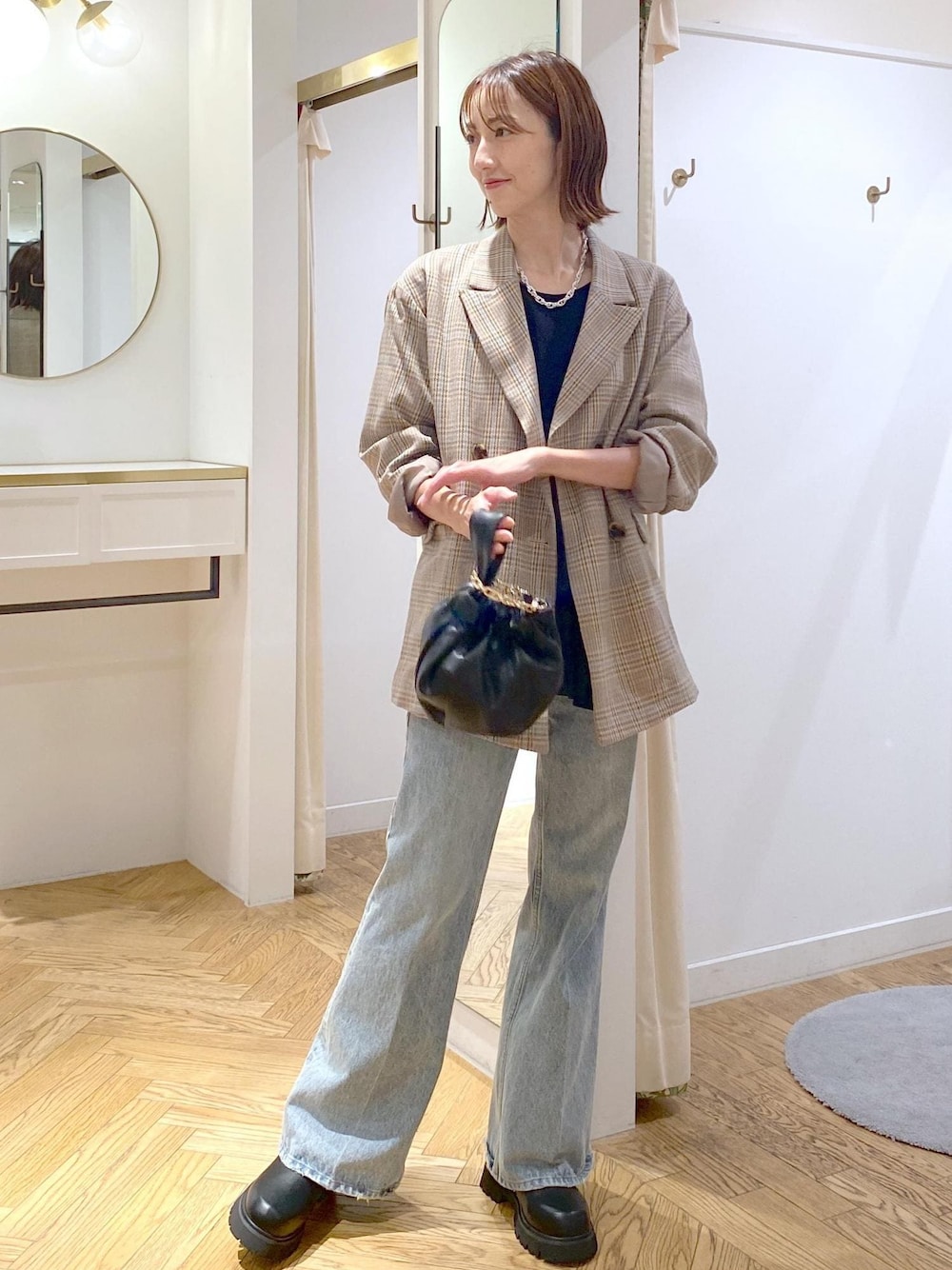 オーバーサイズのジャケットにフレアデニムを合わせた大人カジュアルコーデです! 肩周りがルーズなジャケットはそのまま羽織るとバランスが悪いので、袖をロールアップしてこなれ感をプラスしました⭐︎