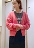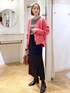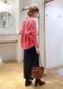 大きめのパールボタンがポイントのカーディガン入荷しました! 秋らしいレッドカラーがポイントなのでその他はダークトーンでまとめました◎