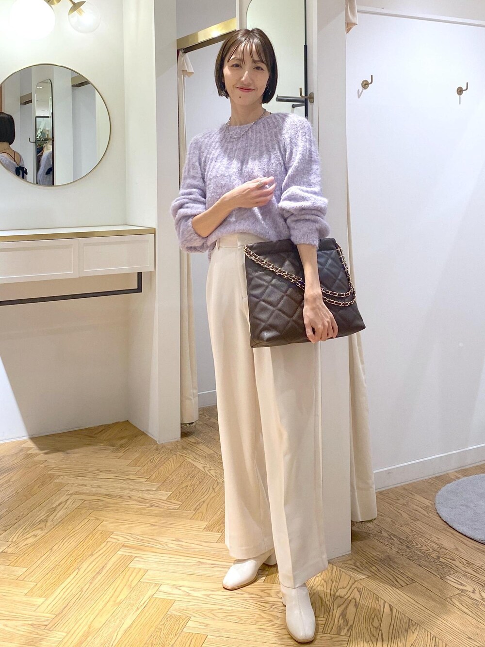 バッグスタイルのリボンが可愛いパープルニットが主役のスタイリングです。 リボンって甘い印象ですが、襟元は割と詰まっているので大人女子でも着やすかったです♪ 後ろ少し長めなのでパンツ合わせと相性◎ ********************* コーディネートご覧いただきありがとうございます⭐︎ 是非お気に入り♡登録していただけると嬉しいです! 気になるコーディネートはフォローしていただくと【お気に入り】タブからご覧頂きやすくなります!! 《 Instagram &WEARも更新中!》 どちらもフォローしていただけると嬉しいです♡ ・Instagram @eri___s_k ・WEAR @eric08