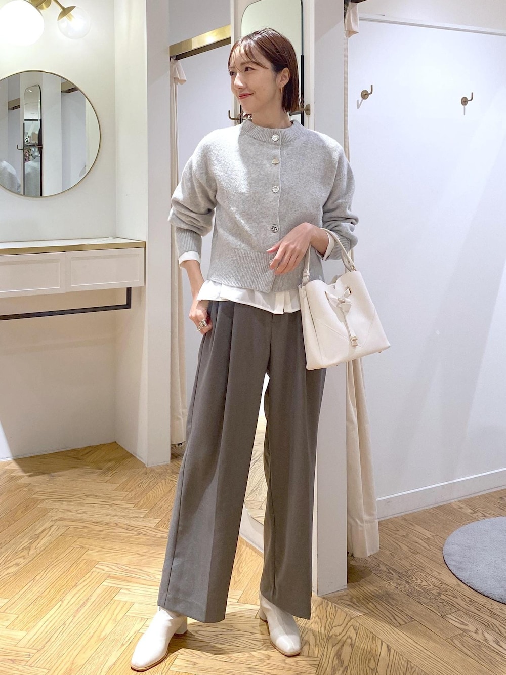 春まで着られるグレーコーデです! コンパクトな丈感のカーディガンにシャツをインしたレイヤードスタイルにした事で、メリハリを出したのがポイント◎ 明るめカラーなので通勤はもちろん、ママさんの学校行事などにオススメです! ********************* コーディネートご覧いただきありがとうございます⭐︎ 是非お気に入り♡登録していただけると嬉しいです! 気になるコーディネートはフォローしていただくと【お気に入り】タブからご覧頂きやすくなります!! 《 Instagram &WEARも更新中!》 どちらもフォローしていただけると嬉しいです♡ ・Instagram @eri___s_k ・WEAR @eric08