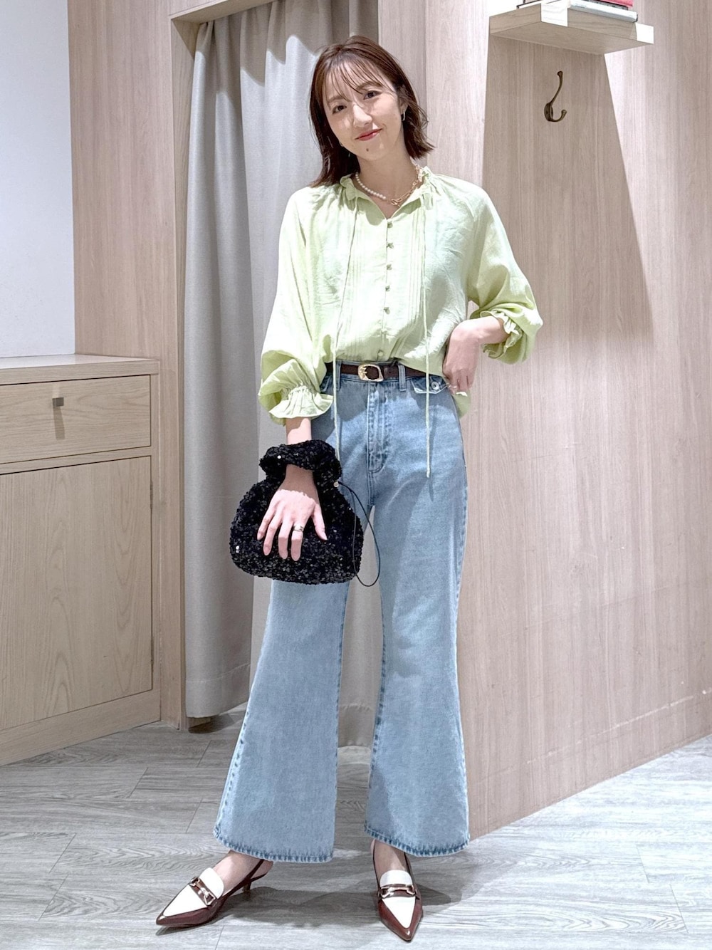 カラーが目を引くグリーンのブラウスに、シルエットがキレイなフレアデニムを合わせたお花見コーデです! ブラウス×デニムでカジュアルな雰囲気なので締め色にベルトを使ったのが大人っぽく仕上がるポイント⭐︎ ********************* コーディネートご覧いただきありがとうございます⭐︎ 是非お気に入り♡登録していただけると嬉しいです! 気になるコーディネートはフォローしていただくと【お気に入り】タブからご覧頂きやすくなります!! 《 Instagram &WEARも更新中!》 どちらもフォローしていただけると嬉しいです♡ ・Instagram @eri___s_k ・WEAR @eric08