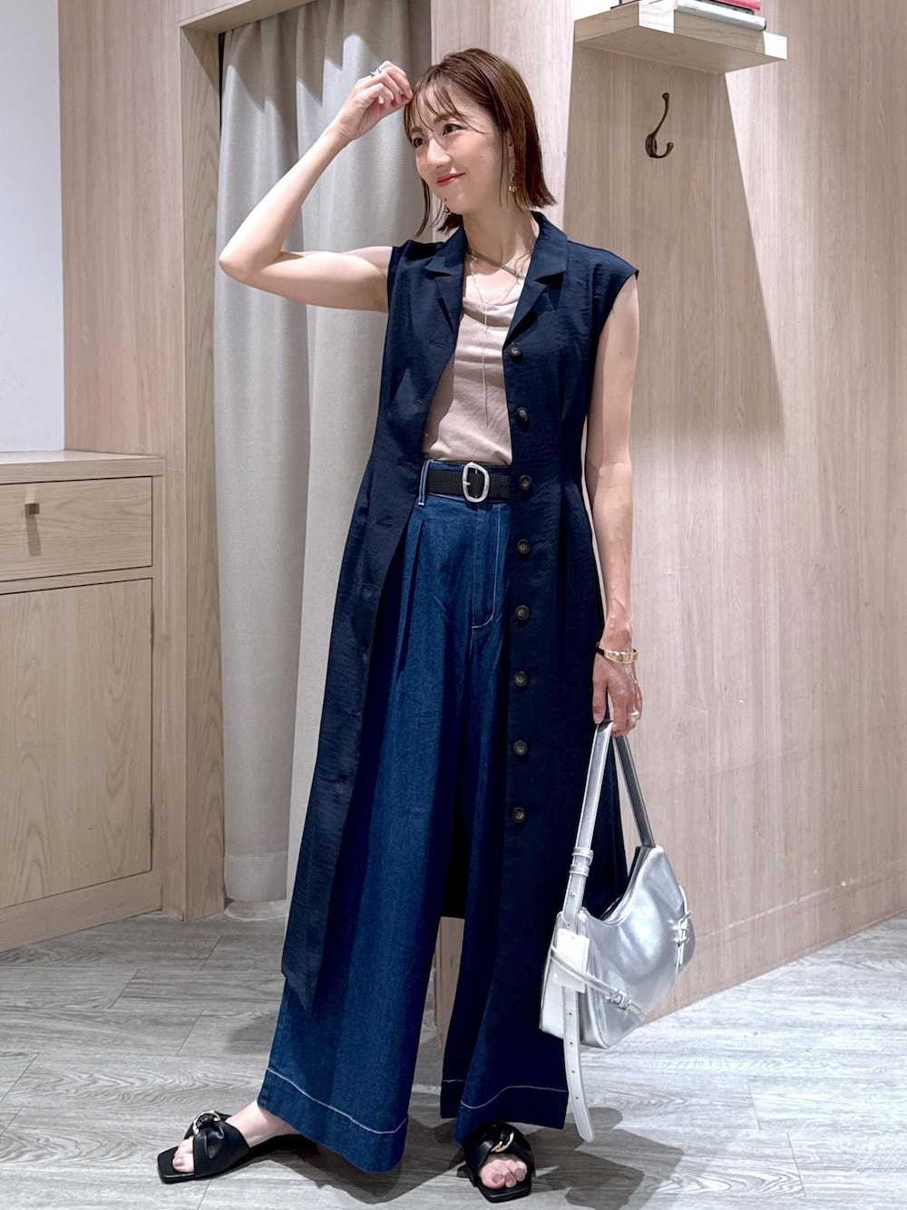 ネイビーの美easyワンピースを前開きの羽織りで着てみました♪ デニムのカラーもネイビーのワントーンにしてカジュアルすぎないようにスタイリング! 涼しげなシルバーのバッグがポイント☆ ********************* コーディネートご覧いただきありがとうございます⭐︎ 是非お気に入り♡登録していただけると嬉しいです! 気になる方はコーディネートはフォローしていただくと【お気に入り】タブからご覧頂きやすくなります!! 《 Instagram &WEARも更新中!》 どちらもフォローしていただけると嬉しいです♡ ・WEAR @eric08 ▶︎Instagramではプライベートや日常も投稿しています♡ 是非チェック&フォローお願いします♪