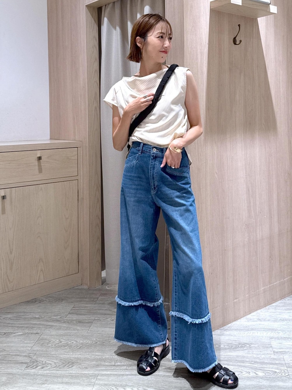 夏休みに着たい!アラフォーママのリアルなお出かけコーデです。 子供達とのお出かけは両手が空くショルダーバッグが便利! ボトムスは動きやすいのに脚長効果のあるデニムにしました◎ *サンダルはスタッフ私物です。 ********************* コーディネートご覧いただきありがとうございます⭐︎ 是非お気に入り♡登録していただけると嬉しいです! 気になる方はコーディネートはフォローしていただくと【お気に入り】タブからご覧頂きやすくなります!! 《 Instagram &WEARも更新中!》 どちらもフォローしていただけると嬉しいです♡ ・WEAR @eric08 ▶︎Instagramではプライベートや日常も投稿しています♡ 是非チェック&フォローお願いします♪