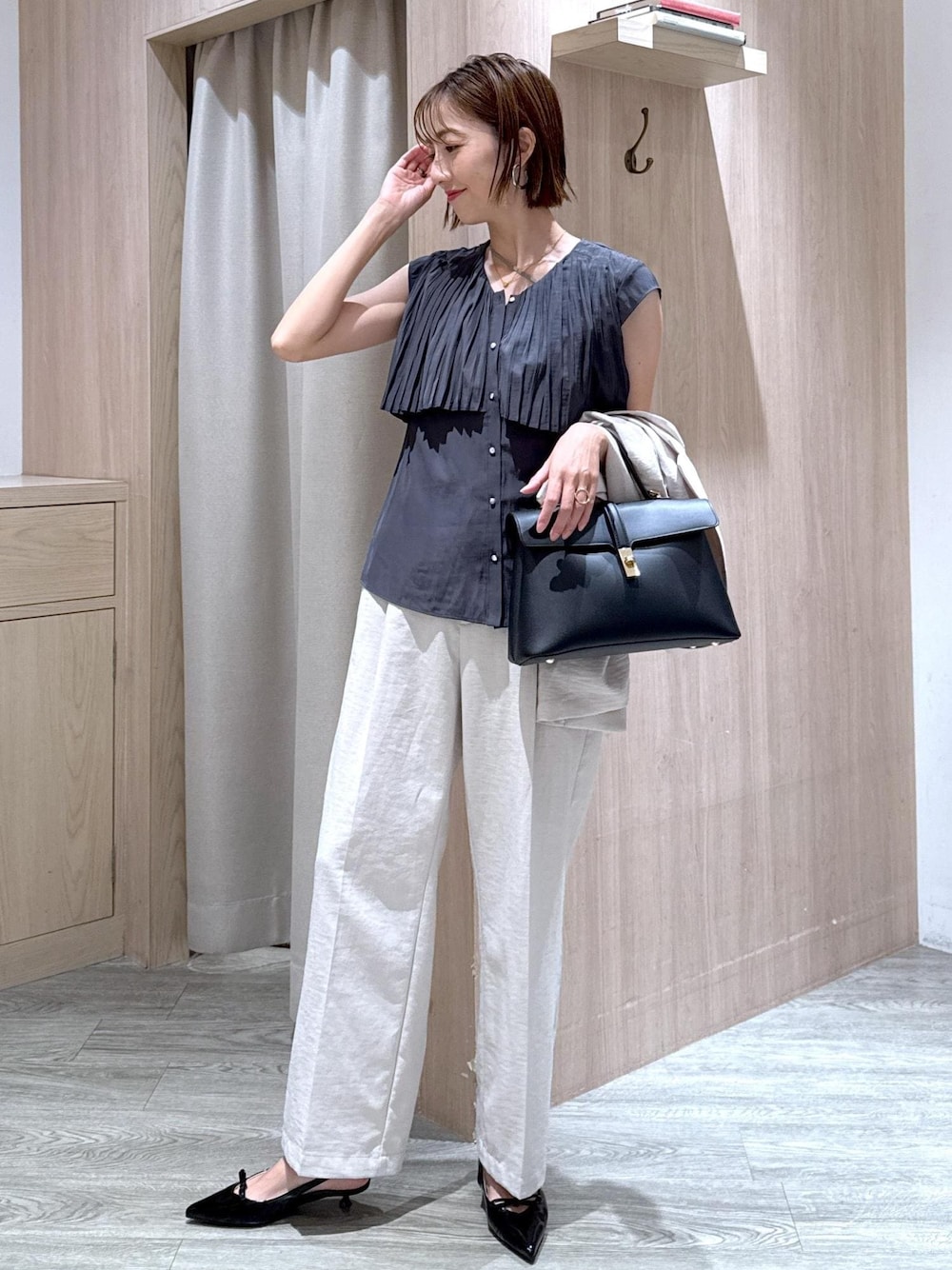 美easyセットアップにプリーツブラウスを合わせた夏の通勤スタイルです! ブラウスは黒ではなくスミクロカラーで、見た目重すぎないのに透けないのがオフィスにも重宝します◎ ********************* コーディネートご覧いただきありがとうございます⭐︎ 是非お気に入り♡登録していただけると嬉しいです! 気になる方はコーディネートはフォローしていただくと【お気に入り】タブからご覧頂きやすくなります!! 《 Instagram &WEARも更新中!》 どちらもフォローしていただけると嬉しいです♡ ・WEAR @eric08 ▶︎Instagramではプライベートや日常も投稿しています♡ 是非チェック&フォローお願いします♪