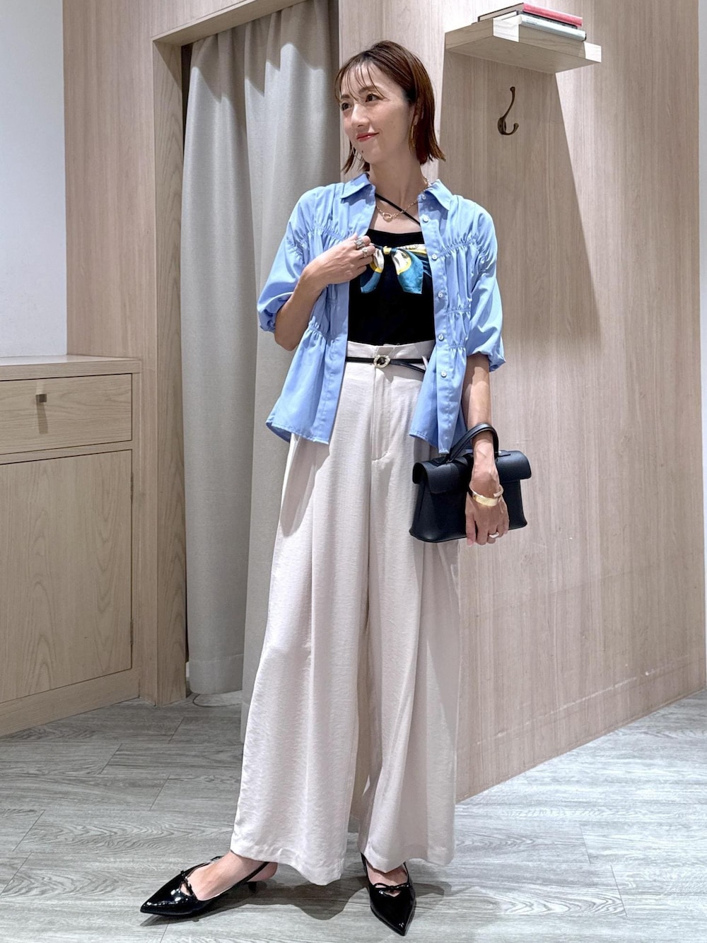 シンプルになりがちなシャツのインナーに、スカーフをプラスしてポイントにしました! 胸周りが寂しいシンプルなスタイリングの時にもオススメです♪ ********************* コーディネートご覧いただきありがとうございます⭐︎ 是非お気に入り♡登録していただけると嬉しいです! 気になる方はコーディネートはフォローしていただくと【お気に入り】タブからご覧頂きやすくなります!! 《 Instagram &WEARも更新中!》 どちらもフォローしていただけると嬉しいです♡ ・WEAR @eric08 ▶︎Instagramではプライベートや日常も投稿しています♡ 是非チェック&フォローお願いします♪