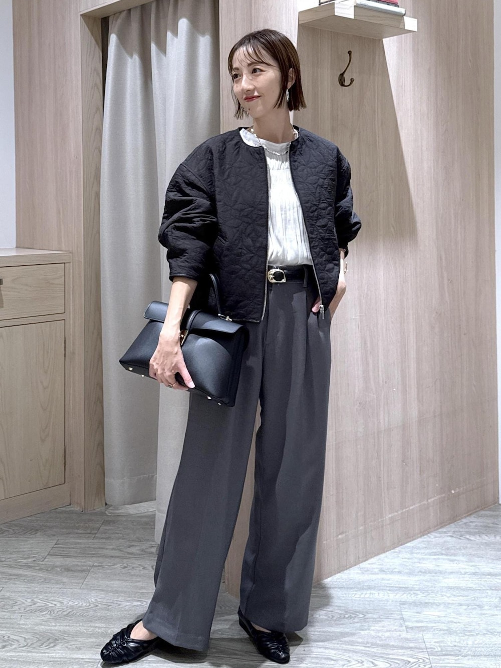 新作のキルティングブルゾンが入荷しました♪ きちんと感のあるブラウススタイルに合わせてキレイめオフィスカジュアルにスタイリングしました。 ********************* コーディネートご覧いただきありがとうございます⭐︎ 是非お気に入り♡登録していただけると嬉しいです! 気になる方はコーディネートはフォローしていただくと【お気に入り】タブからご覧頂きやすくなります!! 《 Instagram &WEARも更新中!》 どちらもフォローしていただけると嬉しいです♡ ・WEAR @eric08 ▶︎Instagramではプライベートや日常も投稿しています♡ 是非チェック&フォローお願いします♪