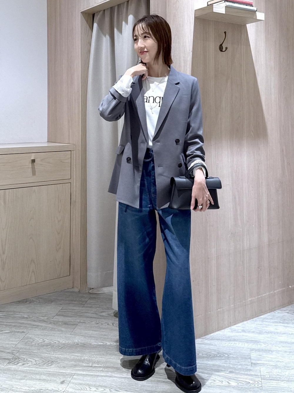 美easyジャケットをワイドデニムと合わせた大人のキレイめカジュアルスタイルです♪ ロゴTを合わせて春っぽくスタイリングしました☆ *記載のない物は本人私物です ********************* コーディネートご覧いただきありがとうございます⭐︎ 是非お気に入り♡登録していただけると嬉しいです! 気になる方はコーディネートはフォローしていただくと【お気に入り】タブからご覧頂きやすくなります!! 《 Instagram &WEARも更新中!》 どちらもフォローしていただけると嬉しいです♡ ・WEAR @eric08 ▶︎Instagramではプライベートや日常も投稿しています♡ 是非チェック&フォローお願いします♪