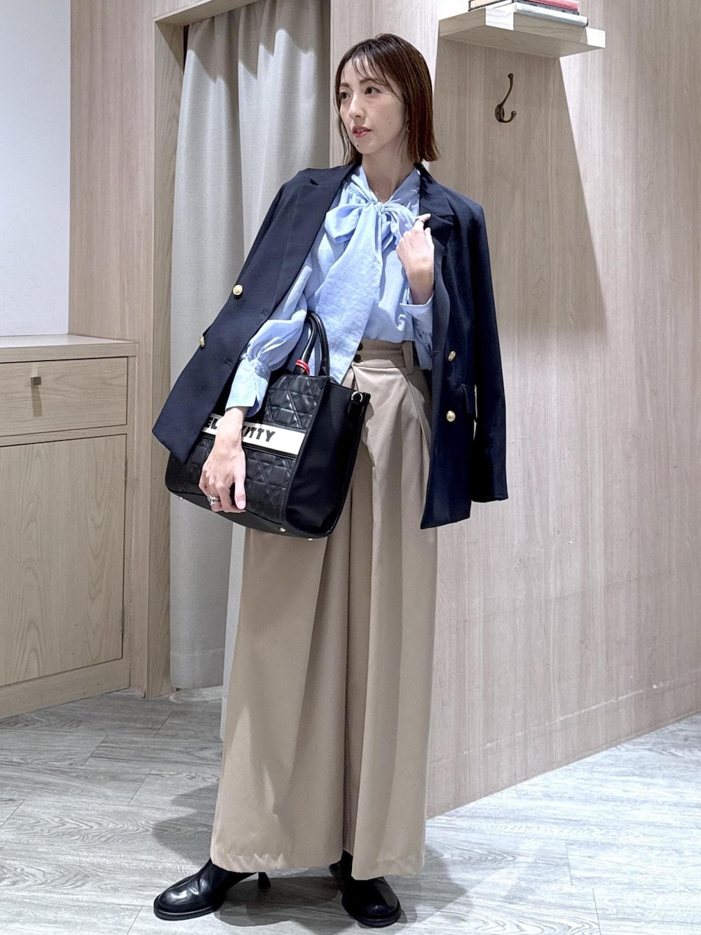 ダブルの金ボタンのジャケットにサラッとタックパンツを合わせたオフィスカジュアルコーデです! HELLOKITTYコラボのバッグはノートパソコンが入る大きさなので、働くママの強い味方♪ 春の装いに黒の小物で大人っぽくスタイリングしました。 *記載のない物は本人私物です ********************* コーディネートご覧いただきありがとうございます⭐︎ 是非お気に入り♡登録していただけると嬉しいです! 気になる方はコーディネートはフォローしていただくと【お気に入り】タブからご覧頂きやすくなります!! 《 Instagram &WEARも更新中!》 どちらもフォローしていただけると嬉しいです♡ ・WEAR @eric08 ▶︎Instagramではプライベートや日常も投稿しています♡ 是非チェック&フォローお願いします♪