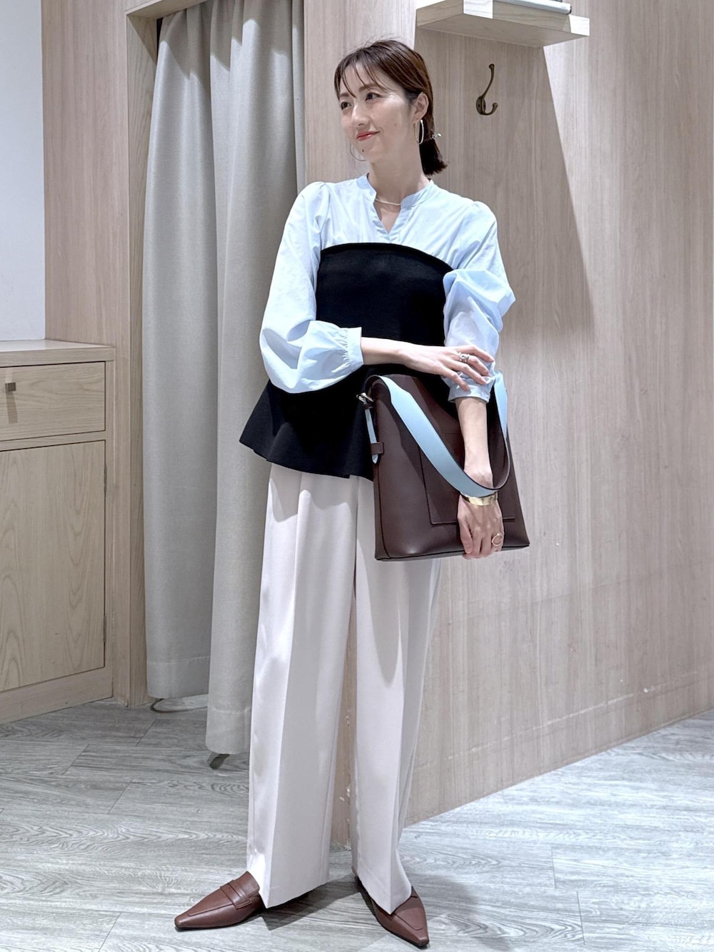 ドッキングデザインが可愛いトップスとスラックスでキレイめカジュアルなオフィススタイルです。 ミュールをブラウンにして、バッグのツートンと合わせてblue×brownコーデにしました☆ *記載のない物は本人私物です ********************* コーディネートご覧いただきありがとうございます⭐︎ 是非お気に入り♡登録していただけると嬉しいです! 気になる方はコーディネートはフォローしていただくと【お気に入り】タブからご覧頂きやすくなります!! 《 Instagram &WEARも更新中!》 どちらもフォローしていただけると嬉しいです♡ ・WEAR @eric08 ▶︎Instagramではプライベートや日常も投稿しています♡ 是非チェック&フォローお願いします♪