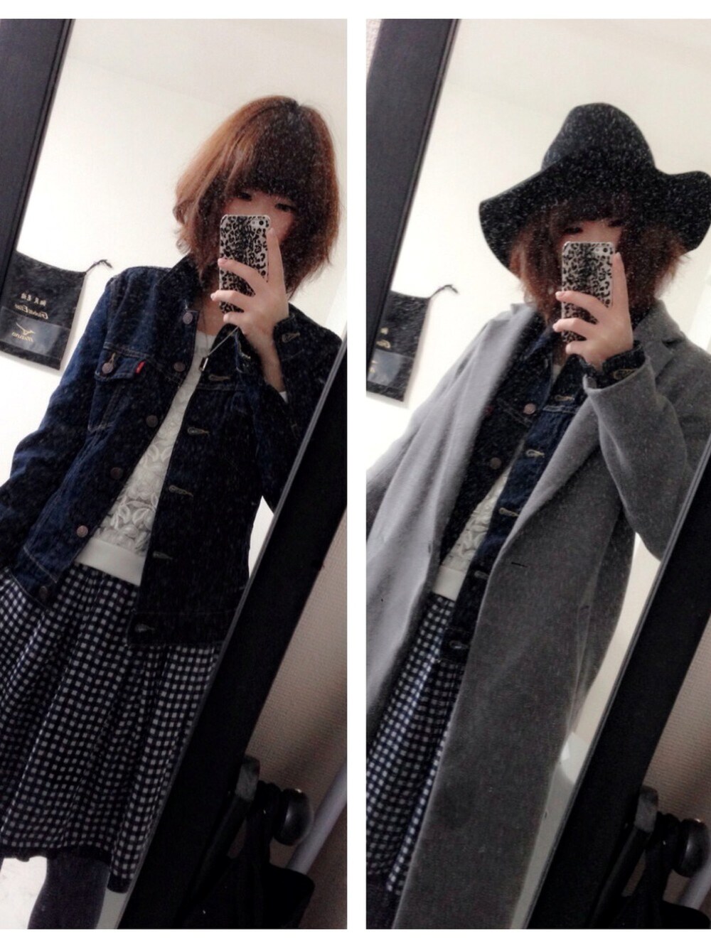 頭の中は春服でいっぱいなのに 北海道はまだまだ冬なので あったかい格好です(^^) アウターの重ね着が流行ってるみたいなので挑戦 ハットは貰い物 帽子だいすきなので嬉しくて愛用〜〜 自分にしては大人めカジュアルなファッションだと思う ブルー系にハマりそうな春の予感…!