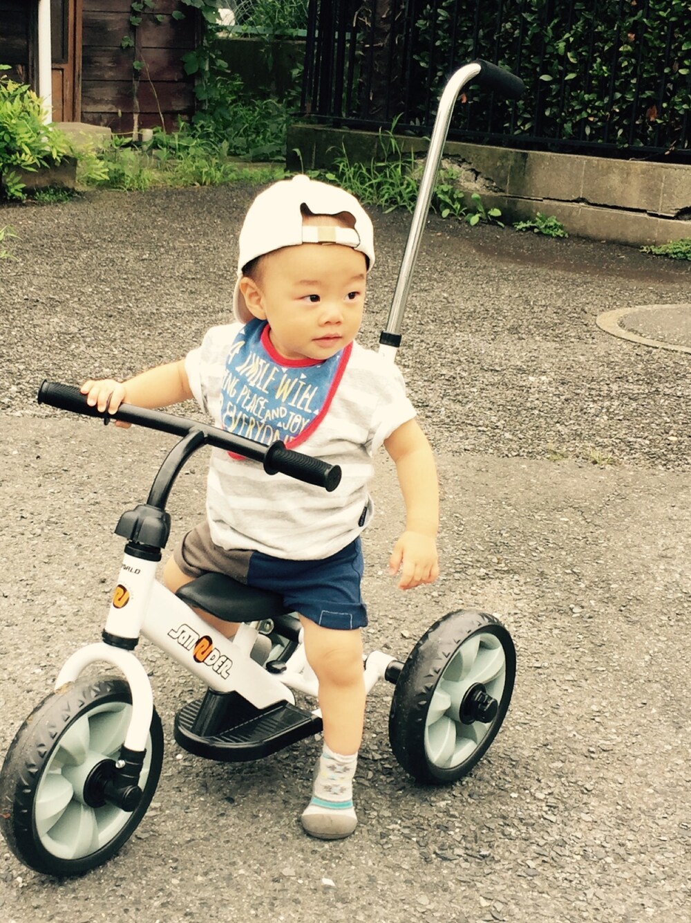三輪車デビュー🚲 最近奥歯が生えてくるのか またまたよだれダラダラ期。 久しぶりにスタイを付ける日々。