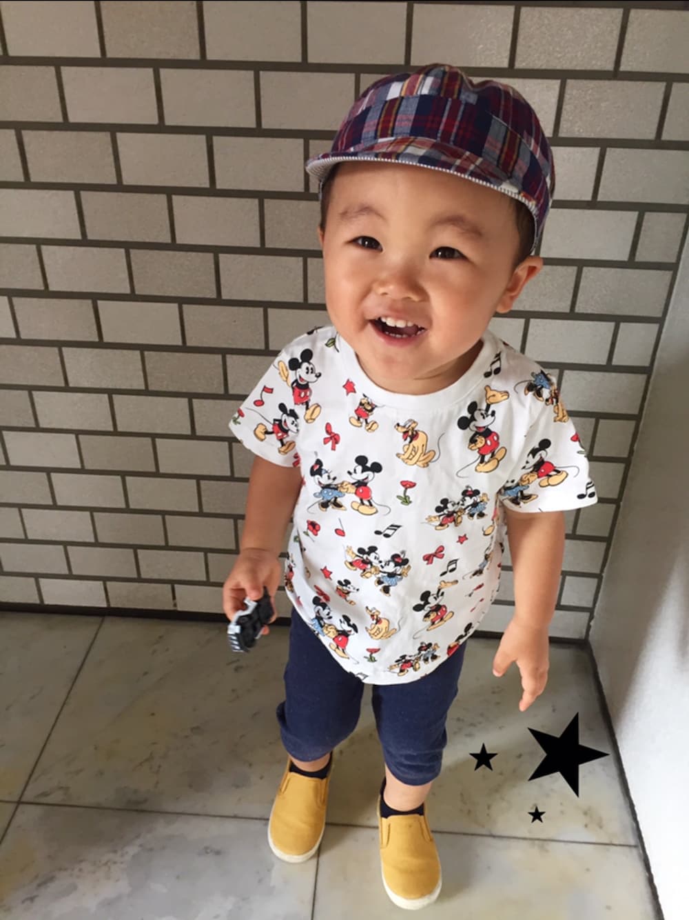 ⚫️ ⚫️ (ˊo̶̶̷ᴗo̶̶̷`)今日はミッキー⭐️ 靴もミッキーと一緒の黄色チョイス。 で、、実家に預けられる、息子。 私は代官山へ⑅❛ั◡❛ั⑅ eyelash❤︎いってきます!