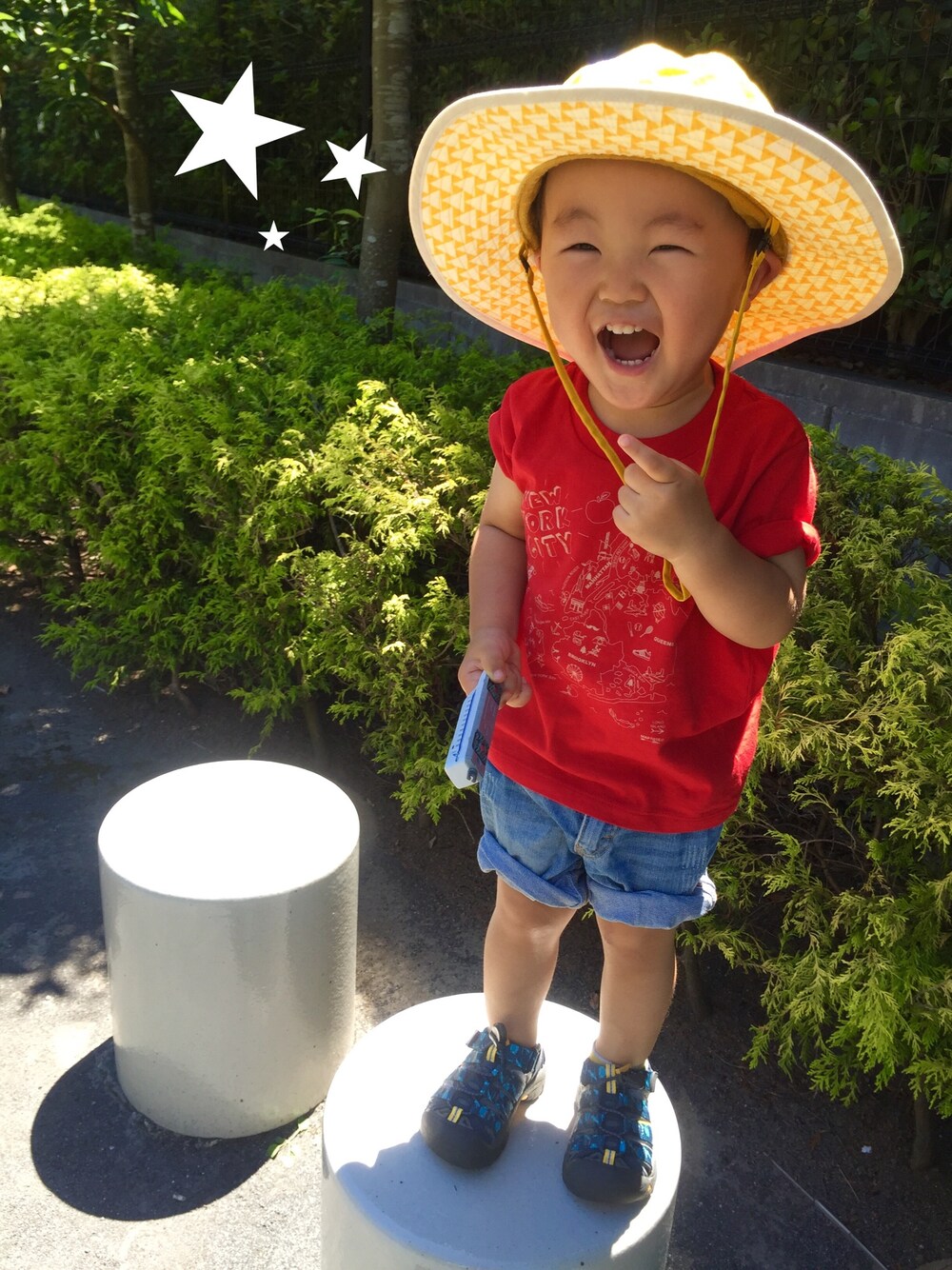 カムバック東京( ´͈ ᗨ `͈ )◞♡⃛ 新入り帽子はノースのキッズホライゾン。 日照りが凄い夏🌞🌞🌞 大活躍しそう😋❤️ (p.s..WEAR不具合なう😐とほほ)