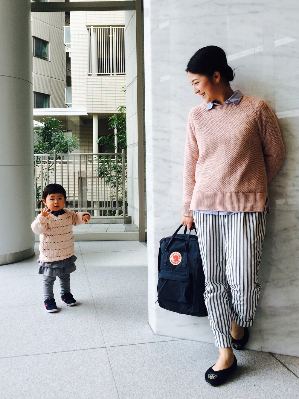 ピンで撮ろうと思ったら、 娘乱入🎶 ピンクニットであわした親子コーデ♡ 昨日買ったGAPのニット、 すごーく着やすくて春まで活躍しそうな予感🎶