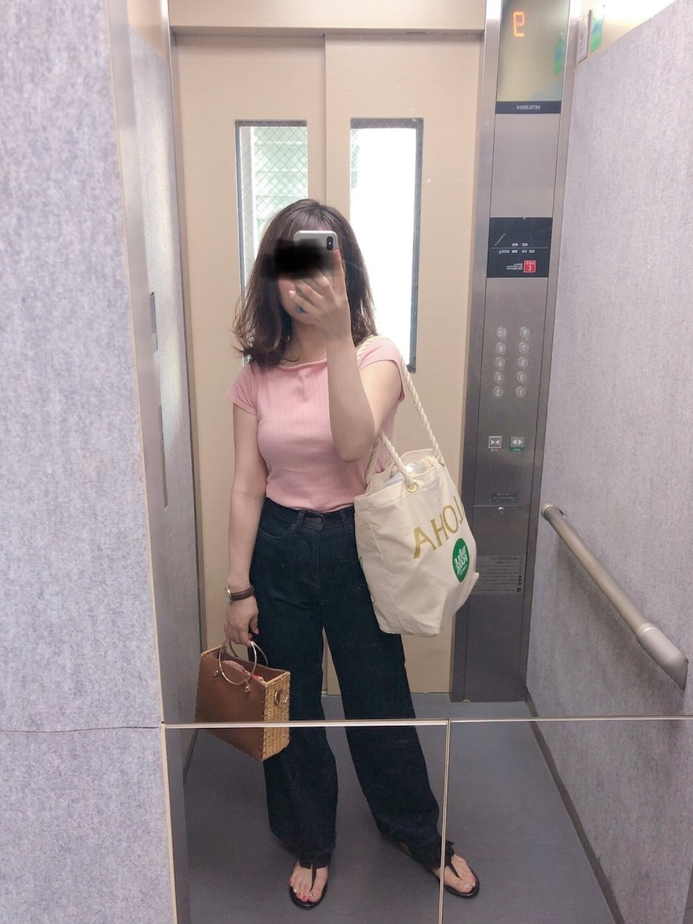 ジムのあと。 帰省の移動は動きやすいスタイルで! チビにこのタイプのデニムは 履けないと諦めてたけど UNIQLOのこれ、いい!