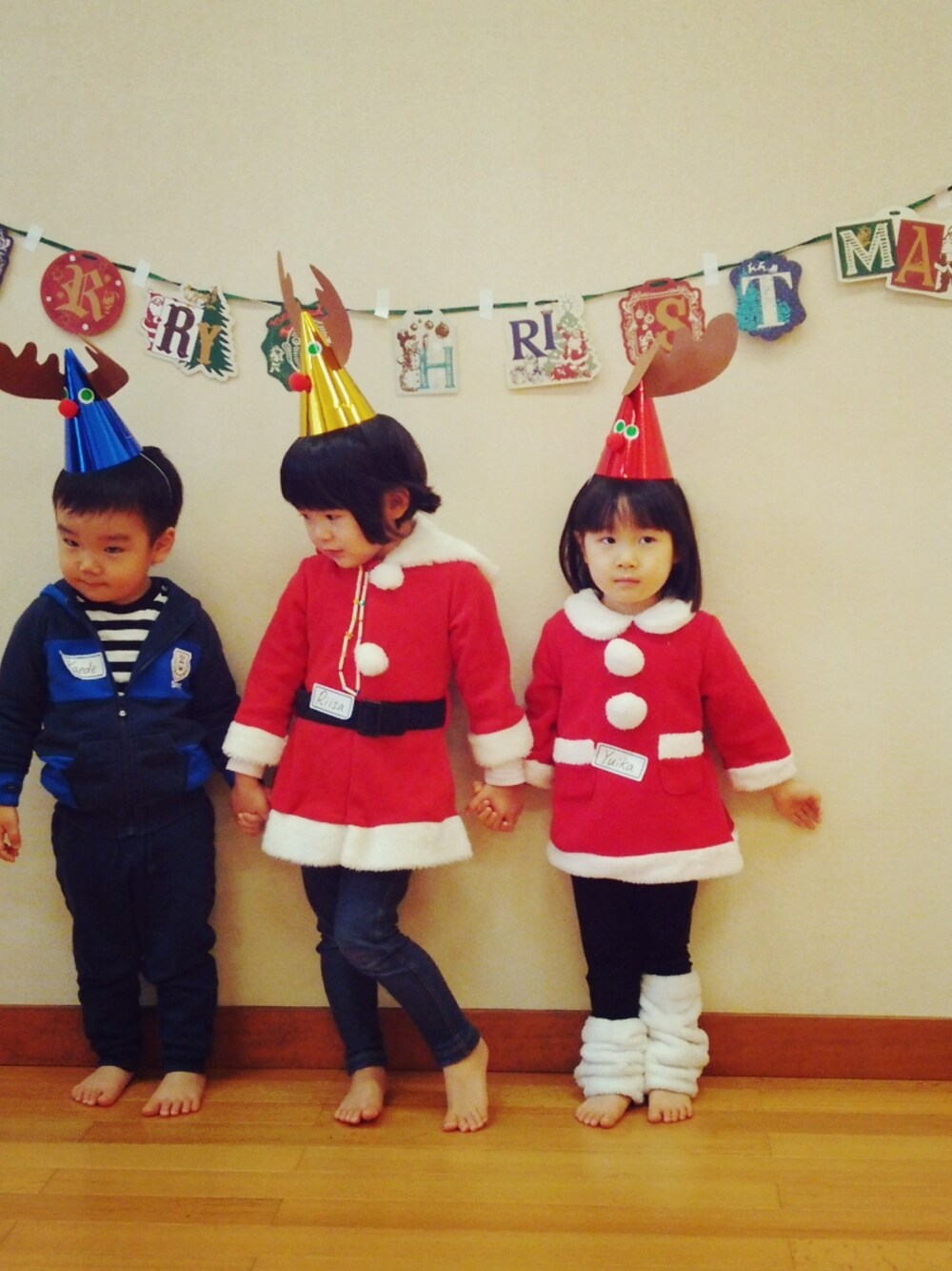 今年もたくさんクリパしたね♡ サンタの衣装も三年選手!!タイツ履かないとパンツ丸見えです(笑) サンタさんからのプレゼントは、ラプンツェルのお化粧セットでした♡ 素敵なクリスマスを~(*^▽^)/★*☆♪