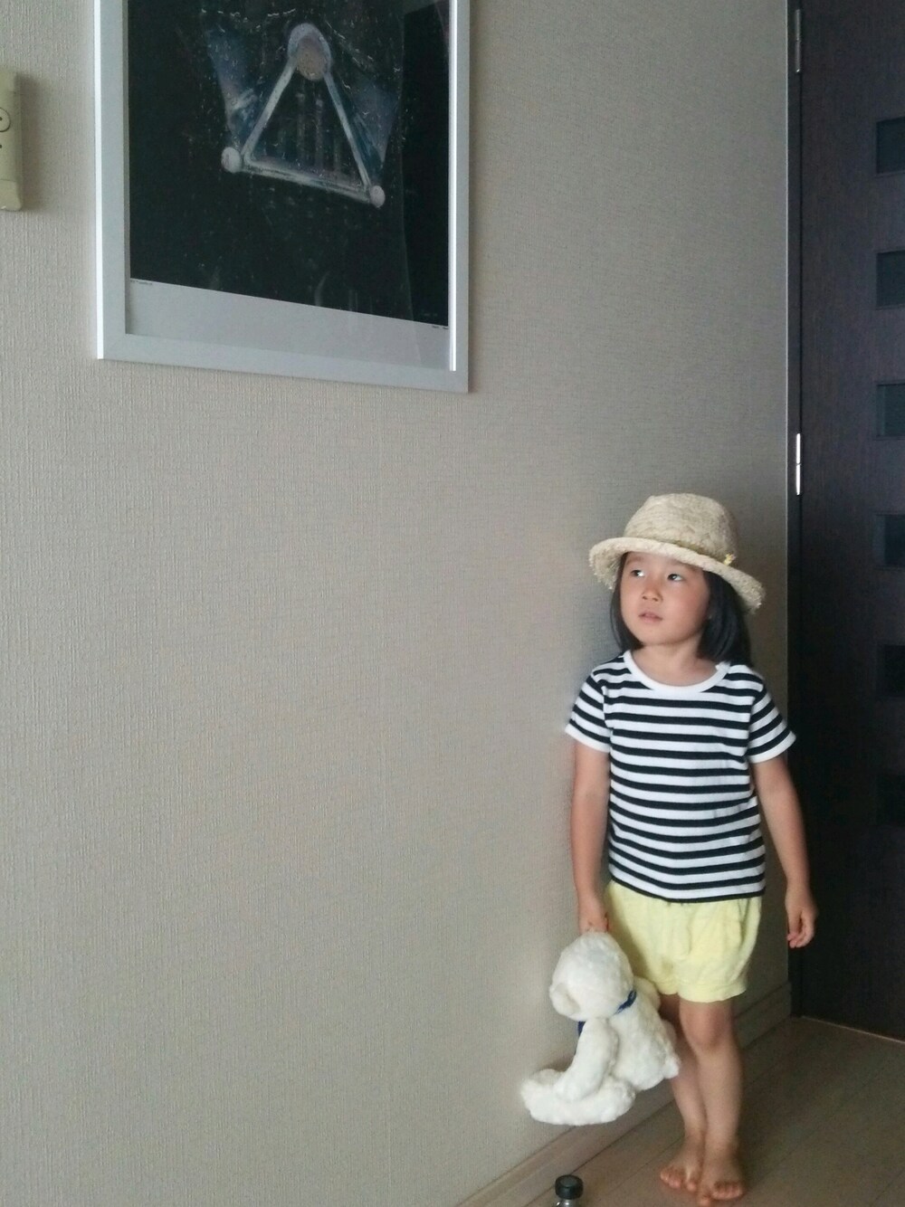 写真はクマだけど、パンダを抱いてスーパーへ♡ 帰りはママが持たされたけど(^-^; 娘、パパの影響でスターウォーズ好き♡ ダースベーダーのポスターはお気に入り!?