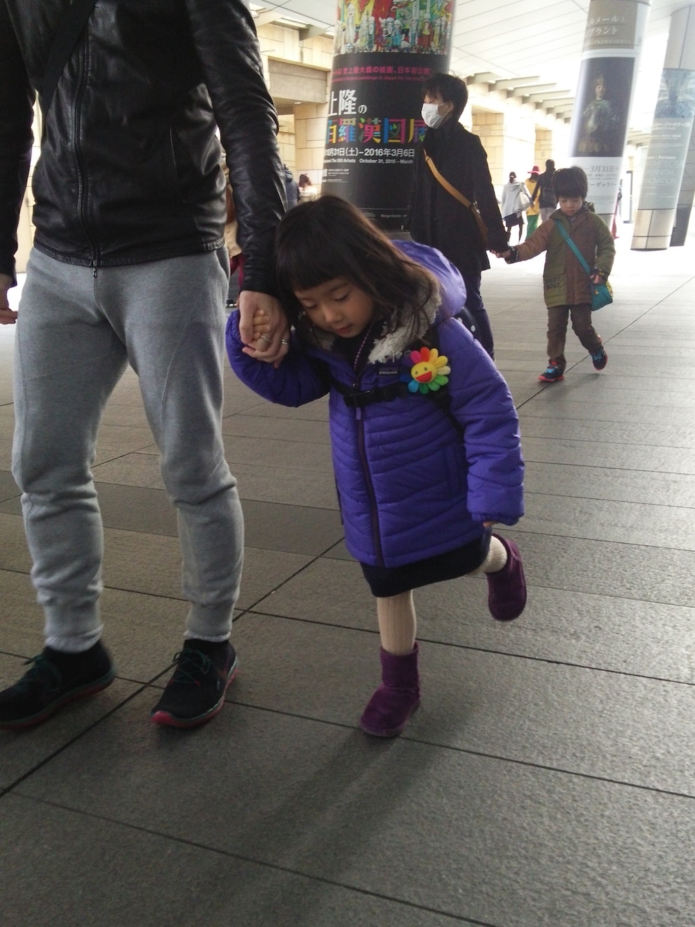 村上隆のお花カフェへ♪ 可愛かったぁ(*´∀`) リュックにお花バッチついてるのに、もう一つ欲しいって(^_^;) 今度は前につけました~