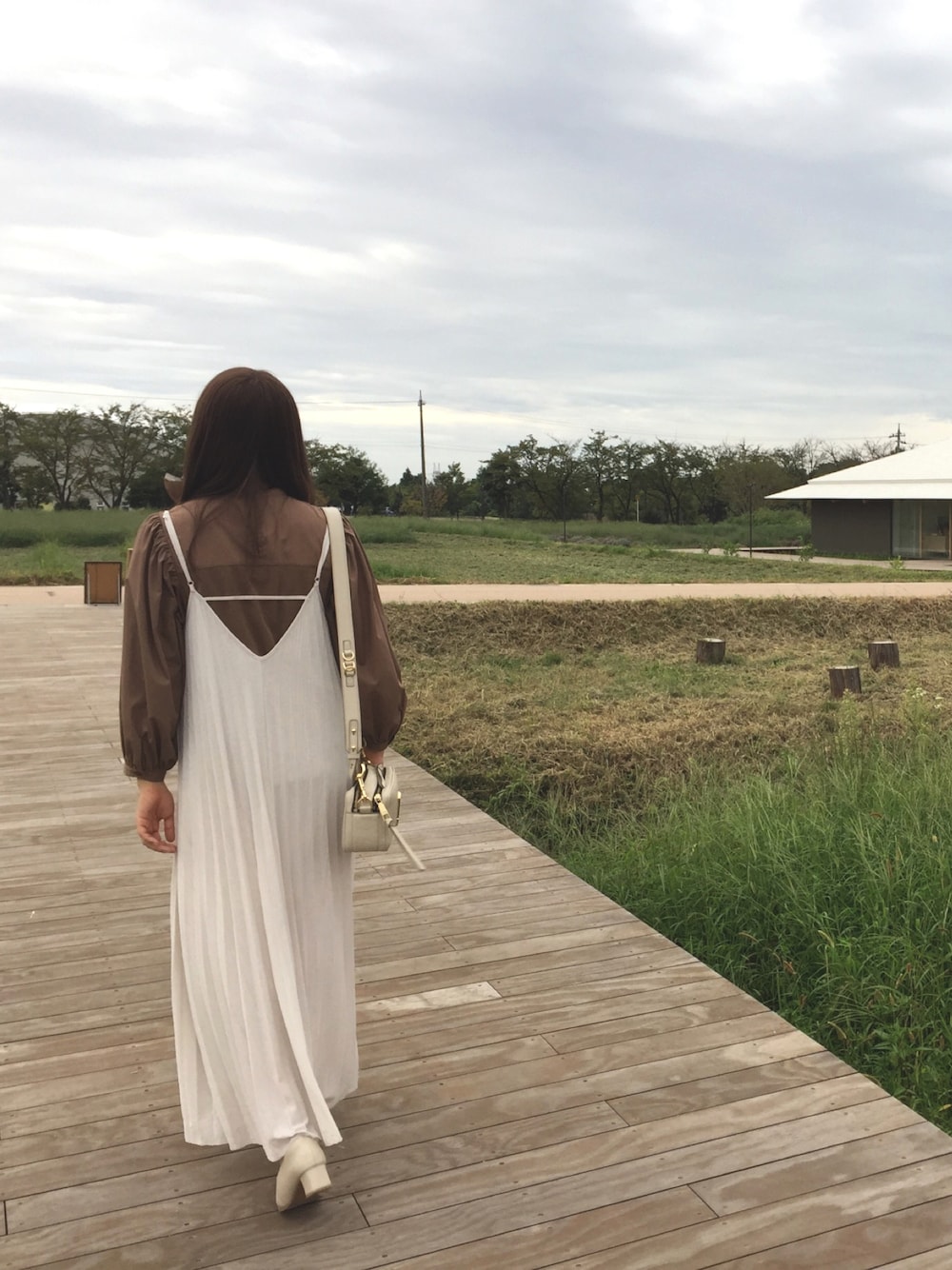 eriのワンピース「プリーツキャミワンピース」を使ったコーディネート