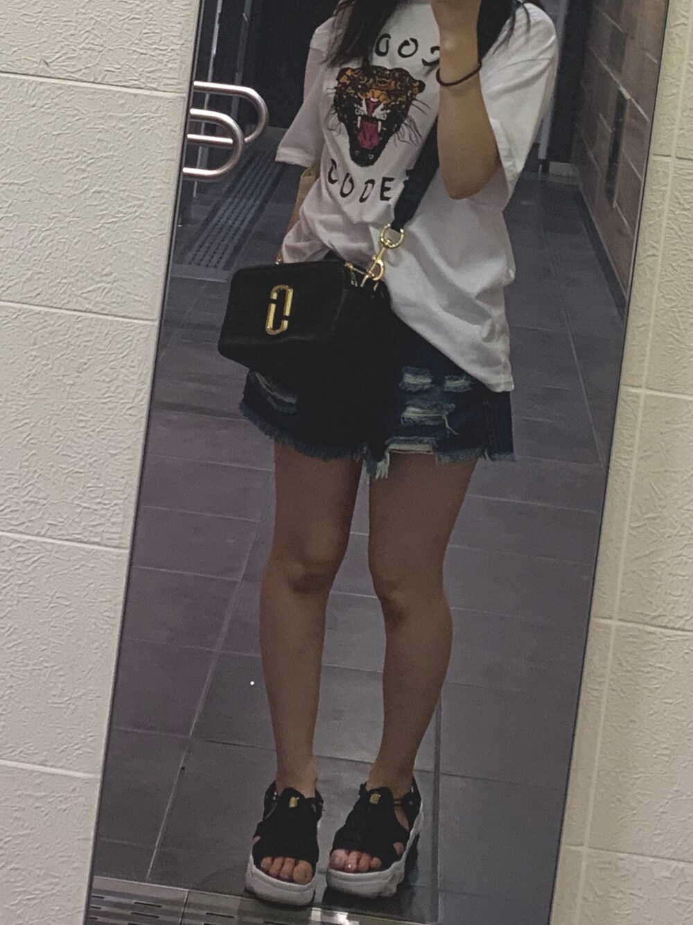 eriのサンダル「NIKE ナイキ W AIRMAX KOKO SANDAL エアマックス ココ サンダル 厚底サンダル WCI8798 002BLK/M GOLD」を使ったコーディネート