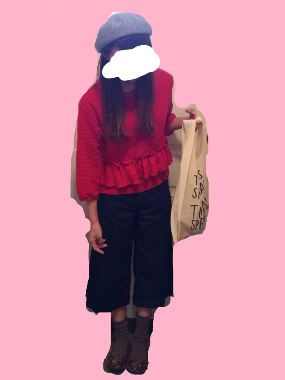 赤のトップスは秋を感じさせてくれる( ﹡ˆoˆ﹡ )もう秋ですね〜芋〜🍠 ベレー帽被って上品にさせました
