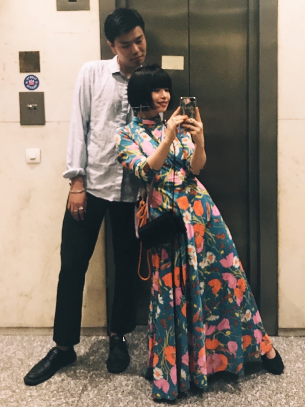 親友と70年代のドレスを着た私です