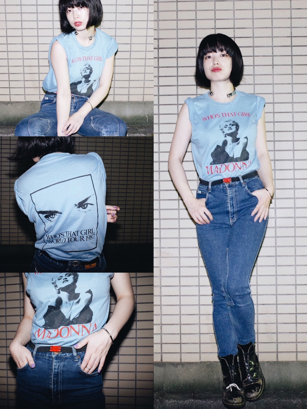 季節外れも甚だしいですが夏に撮った写真出てきたので、、MadonnaのツアーTはアメリカ買い付けでみつけたもの。あの日も暑かったなぁ、、