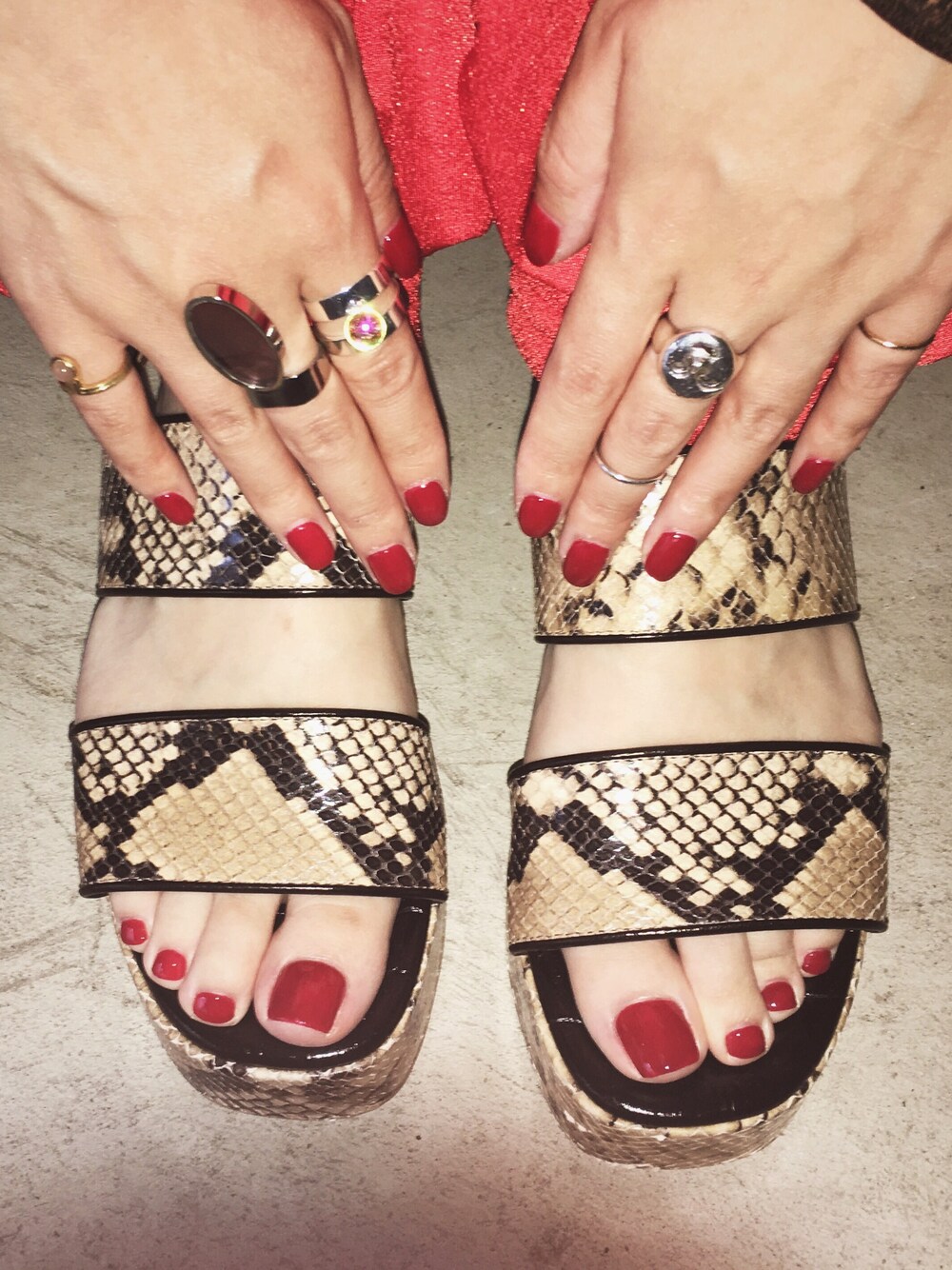 今日の手足元 赤の単色ネイルは 色のセレクトが身上 DISCOのかなちゃんにらとてもいい赤を 作ってもらいました🇹🇳🇧🇭🇳🇴🇹🇷🇹🇴🇩🇰