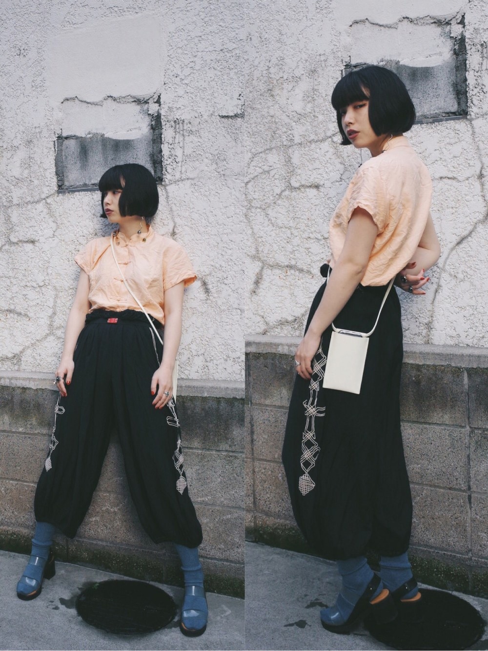 洗いっぱなしでくっちゃくちゃの シルクのチャイナブラウスと むかーしから持ってるエスニックなパンツ。 ポケットない時にこのiPhoneケース ほんとに便利だぁ…
