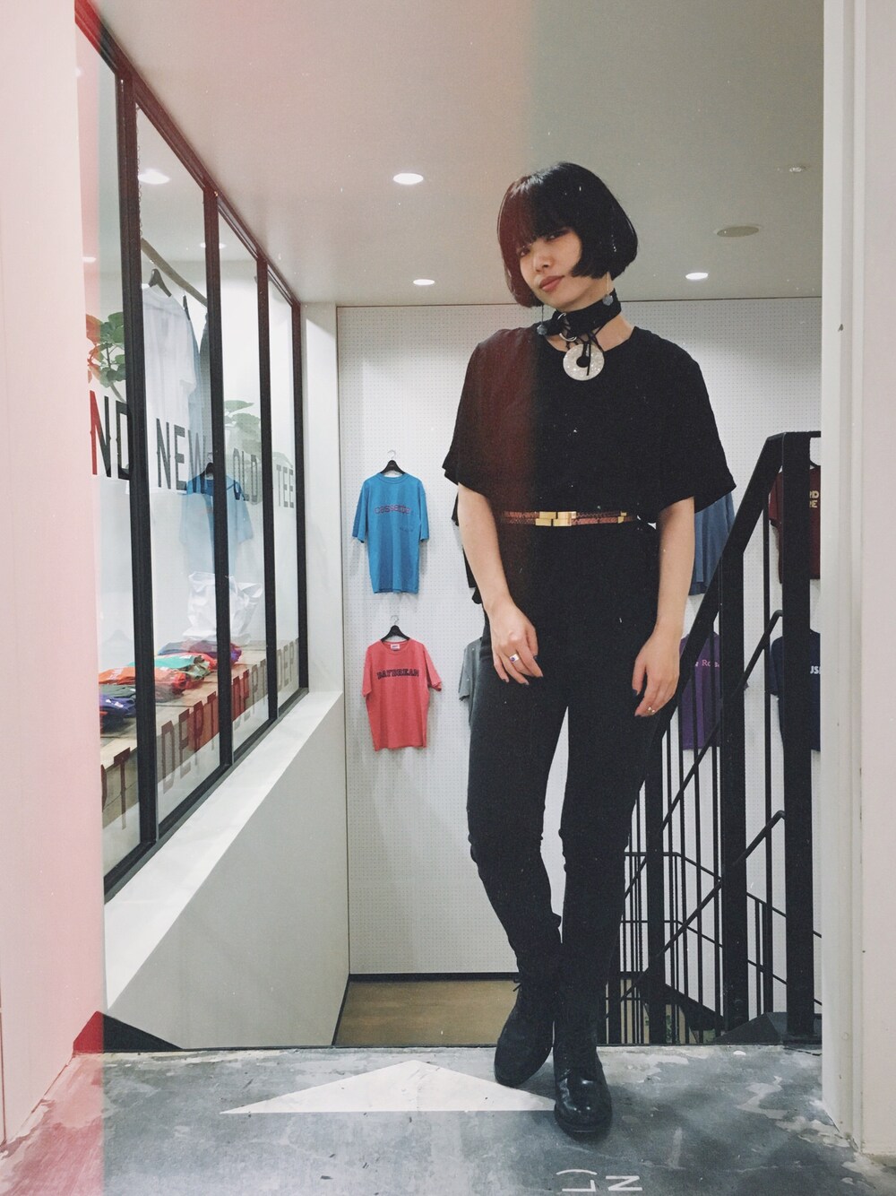 表参道で始まったTシャツポップアップショップの設営だったので、オールブラックの作業向けコーディネート。