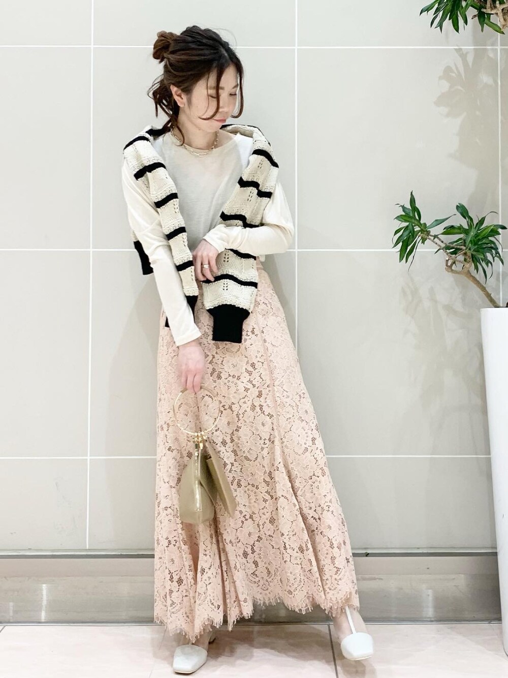 上品見えするレーススカートをあえてカジュアルに合わせてみました🙆♀️🌸 トレンドのボーダーは外せませんね🦓