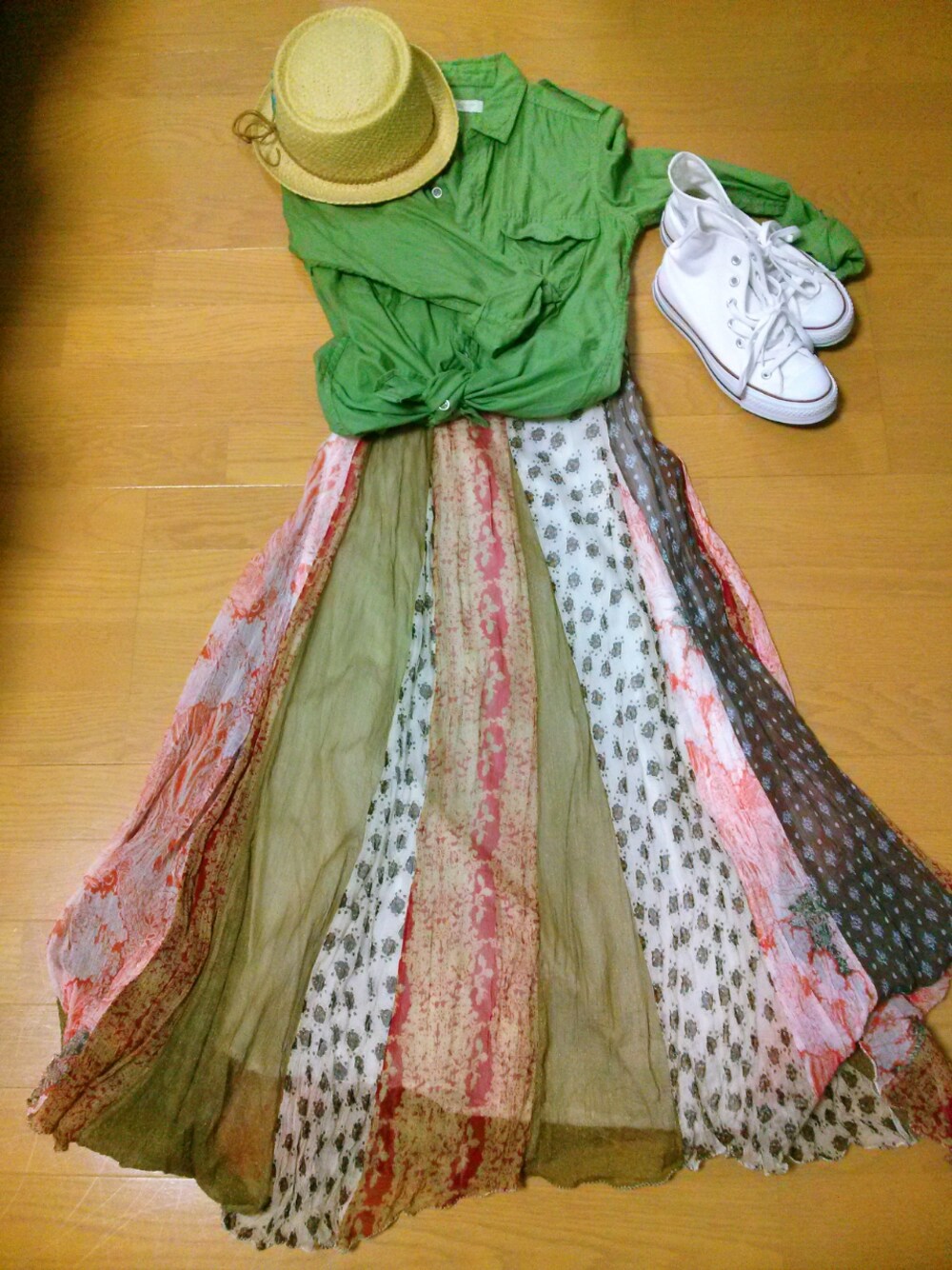 マキシスカート ungrid ハット RODEO CROWNS スカート変えただけ〜 今季のものではないですがお気に入りのスカート 繊細な生地なので大切に着ています 今日は雨だし☂着れないな〜