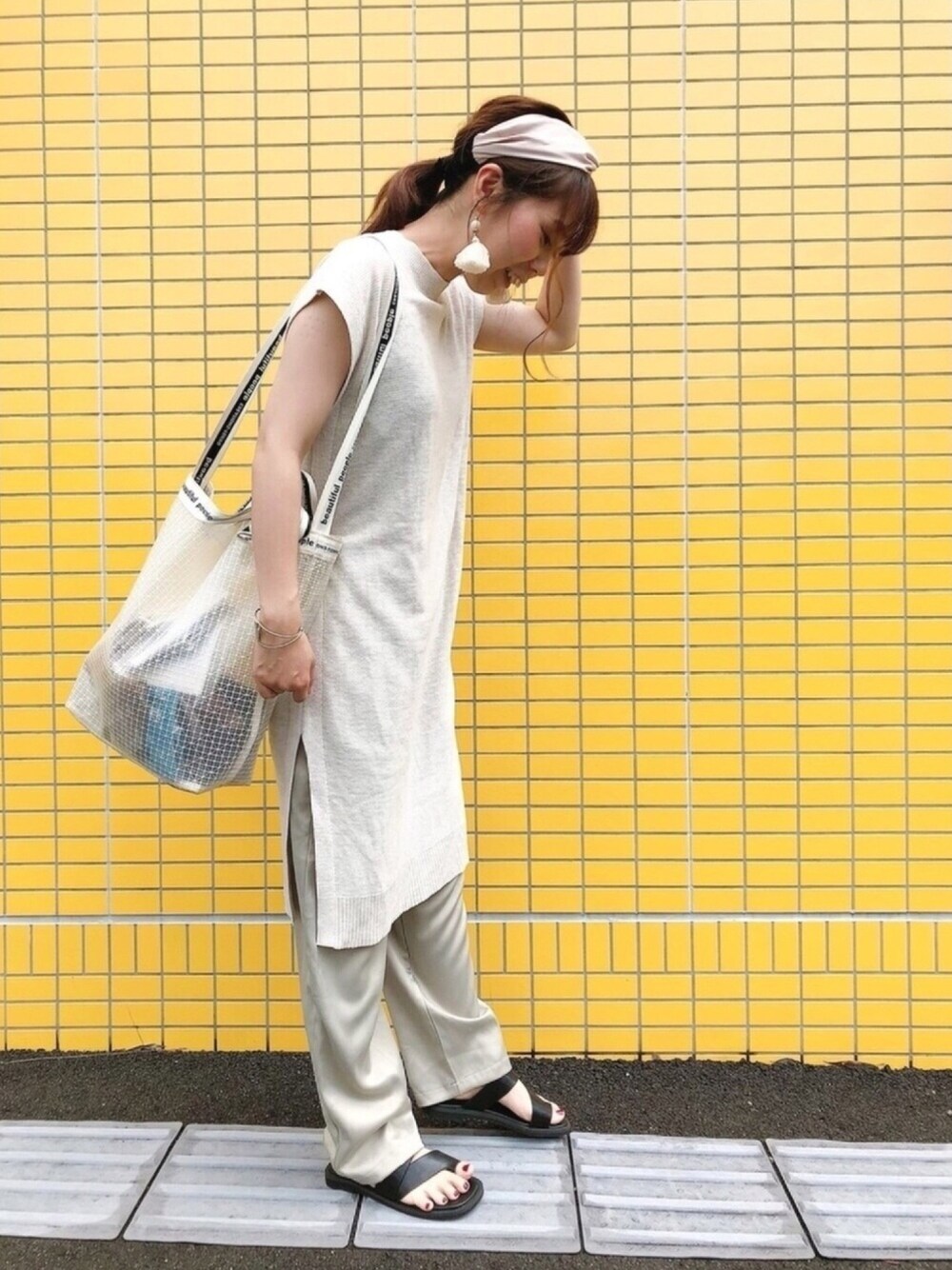 前にも似たような組み合わせがあったかも🤭 小物合わせが少し違うかな? 久々にヘアバンドをしてみました☺️💓 バッグの中身がめちゃ荷物多くて見えてるのと BCG?はんこ注射?の跡がめちゃ見えるのが恥ずかしい🤣💦笑