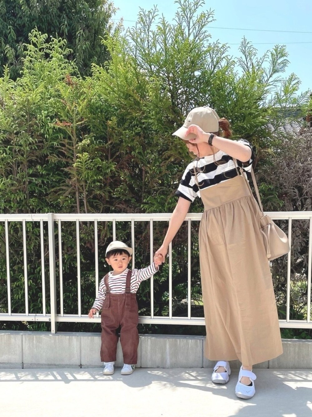 ボーダーとベージュキャップ、サロペで合わせた親子リンクコーデ🥰💕💕 暑かったから半袖でもいけたよ😂☀️ 去年アクアリフトを購入したから、今年はエアリフトを購入しよって思ってたんだけど kidsのリトルリフトというのを発見😆❤️ 24㎝まであったから大人でもいけると23㎝を買いました! 足袋に少し抵抗ある人だし、こっちのがお安いからこっち選びました❤️ 軽くてめっちゃ履きやすい!! 息子にも買ってあげたい🥺💛💛