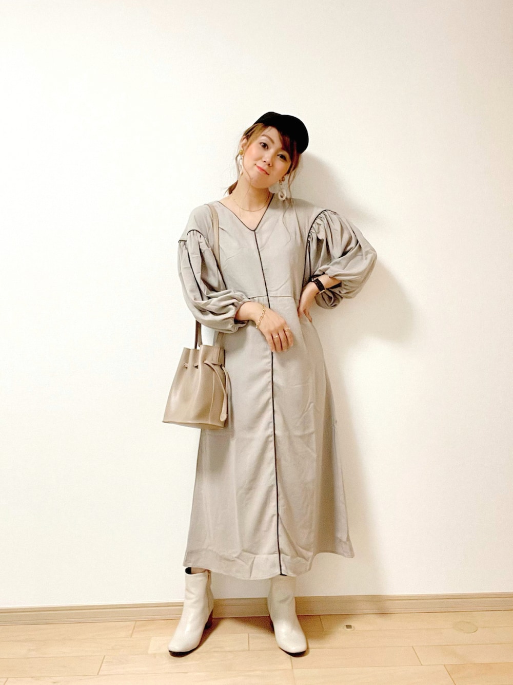 この前投稿したワンピのイロチの無地の方👗💕💕 グレージュってお色なんだけど、こっちもやっぱり可愛い〜😍❤️❤️ お袖のデザインがたまらんよなー☺️💓💓💓 秋っぽくブーツで合わせてみました❤️ 今年はどんなブーツが流行るのかなぁ?👢