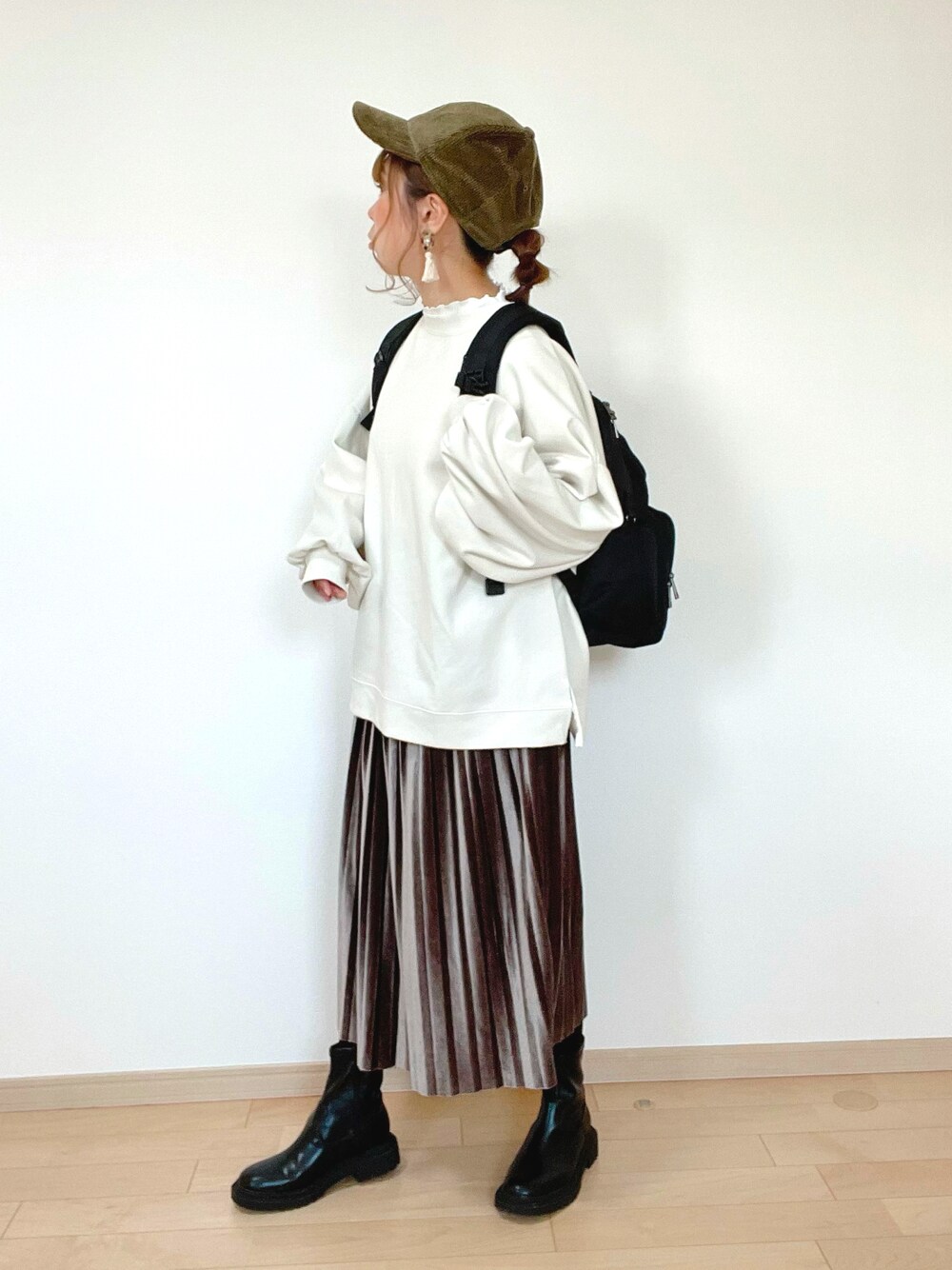 eri♡のスカート「ウエストストレッチベロアプリーツスカート」を使ったコーディネート