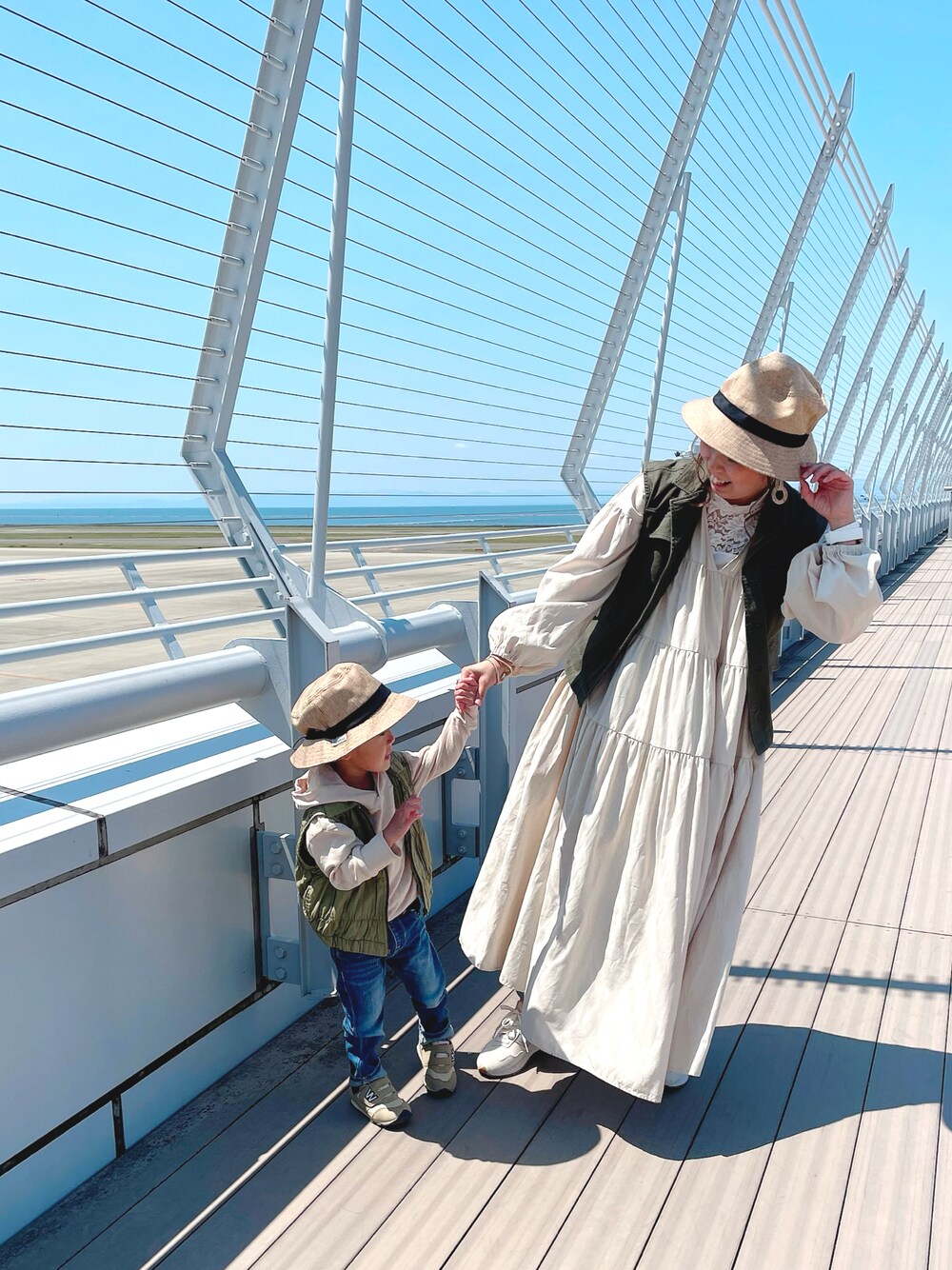 空港に遊びに行って✈️ 旅行気分☺️💓 息子とプチリンク❤️ 帽子はコカゲルさんの親子セットで お揃いだよ👒💓 PRさせて頂きました🥰 お揃い嬉しいな😊💕 私の着てるミリタリーベストは実はkidsの😂 アウトレットで330円だったの🤣🤣 1番大きいサイズで私でも着れたよ✌️