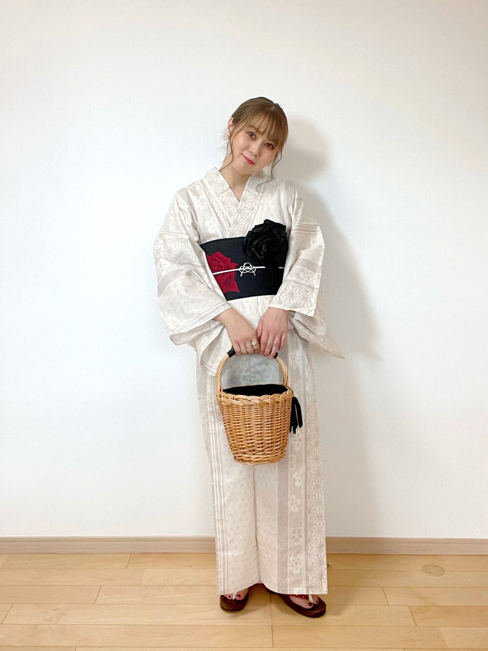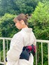 eri♡の浴衣「平帯で浴衣美人に!豪華8点浴衣セット(浴衣・平帯・下駄・帯飾り・髪飾りコサージュ・腰紐2本・前板) 上品昭和レトロ」を使ったコーディネート