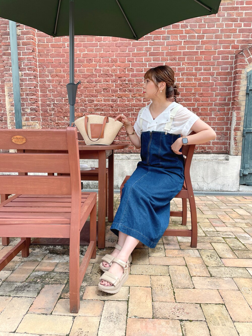 お母さんとお出掛け❤️ 好きな場所🥰🌳 コーデは靴以外全部しまむら🤣 でもお母さんに 『高見えやん!全然しまむらに見えないよ!』 って言ってくれたよ🤩笑 本当にめぐみさん服で夏着回しコーデになっとる😂😂