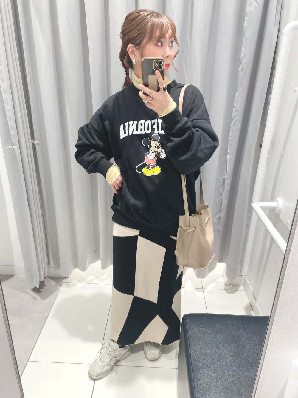 クリスマスも終わっちゃったー🎄😭 ちょっと寂しい気分ですね💦 我が家は昨日サンタさんが来てくれて無事息子にもプレゼントが届きました🎅🎁💕 私にはサンタさん来なかったけど?←笑 息子良かったねぇ🥰❤️ そんな昨日のコーデは 久々にミッキースウェットを着てみました🐭🖤 スウェットに @mgm______2427 さんのブロッキングスカート合わせ🫶 インナーでチラ見せしたイエローのシアータートルがポイント💛 これ @uniqlo_jp で今500円だったの! #シアージャージータートルネックT ってやつ☝️ 着やすくてオススメだよ😆 そんなモノトーンコーデでした🫶🖤🤍