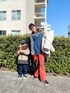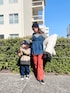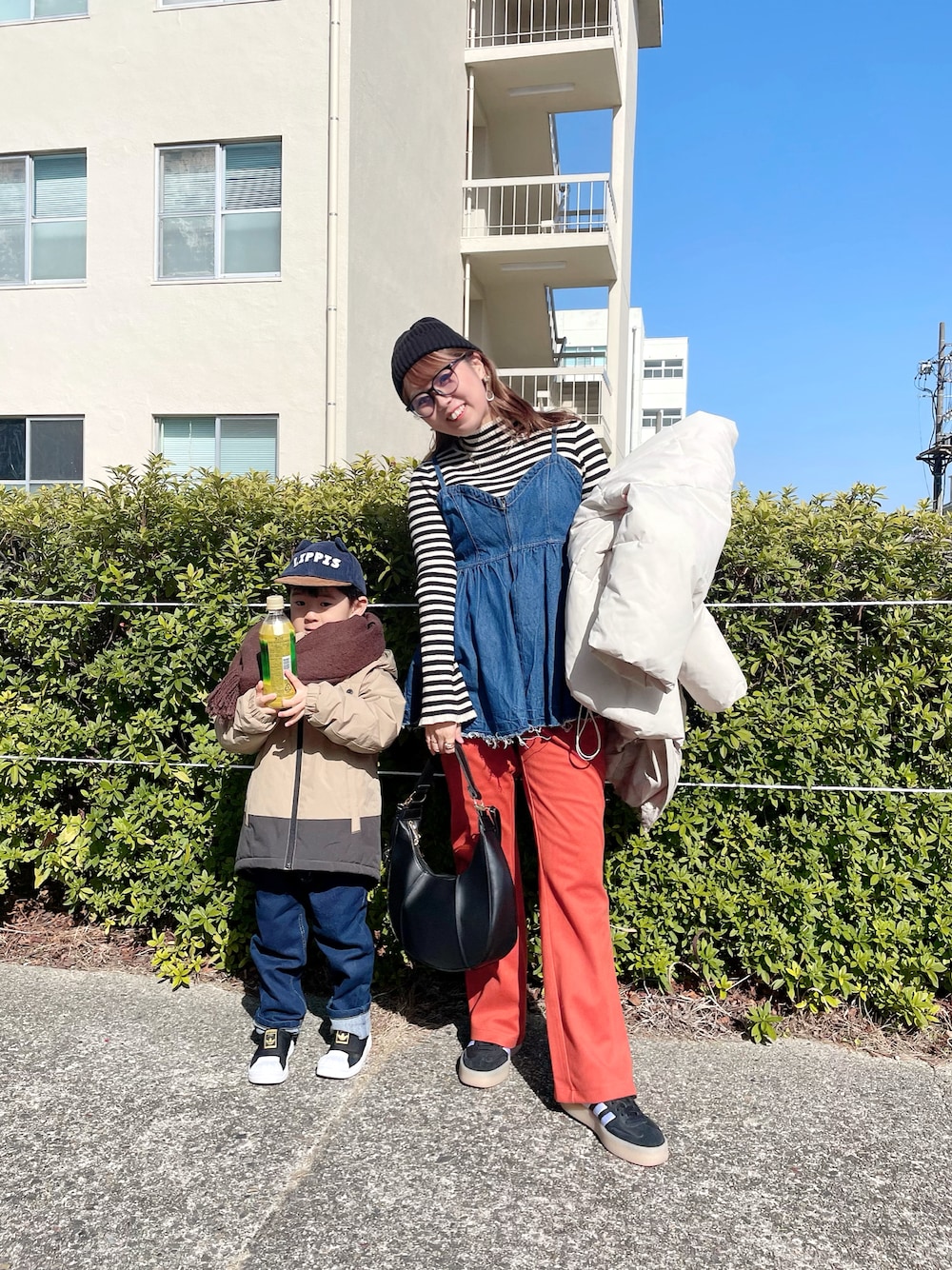 時系列バラバラ😂 まだ髪長いのも← ボーダーニットにめぐみさんのデニムビスチェをレイヤード🙆このビスチェほんとお気に入り🫶 パンツは目立つオレンジで🍊 これ @_vacancy_official のなんだけど、ラインめちゃ綺麗であったかいんだ🔥 久々に履いてみた☺️ 最近カラーコーデまたまた再熱してきた😍🌈✌️