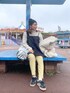 週末の遊園地コーデ🎡🎢❤️ 動きやすいパンツスタイル! 最近、 @reca_official で購入したカラーパンツ🩳 イエローをchoiceしたよ💛 これ新色みたい❣️ これめっちゃ履きやすくてヘビロテ間違いなし🙆♀️ 春に向けてカラーを増やしました🥰🐝 週末は、3月ならぬな気候でめっちゃ寒かった⛄️😭 なんであったかく着込んでったよ! ダウンがずっとしまえない…笑