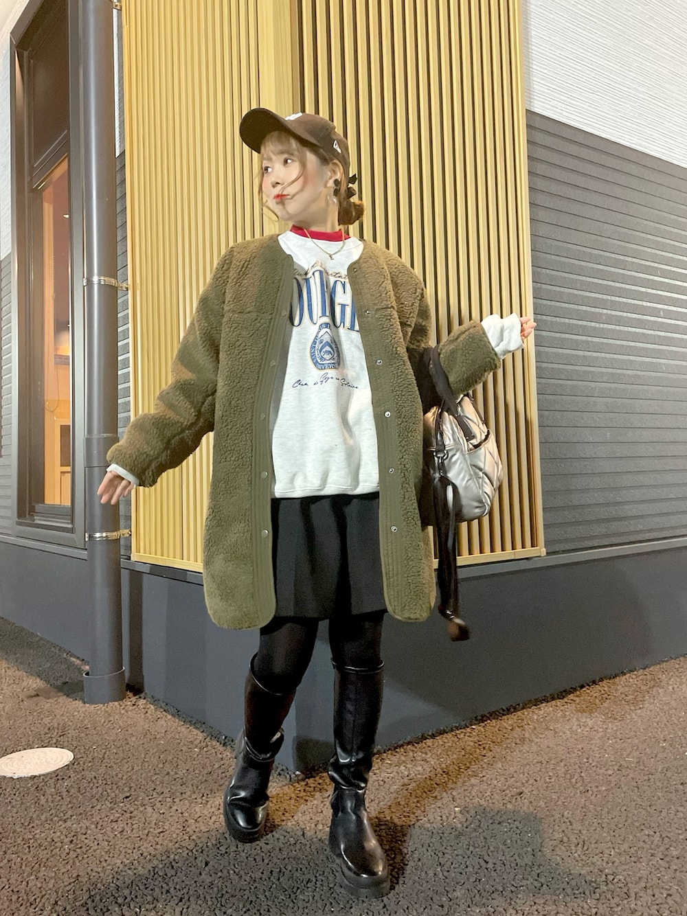 クリスマスに焼肉に行った時のコーデ🥩💖 このアウター可愛くて2色目🤭❤️