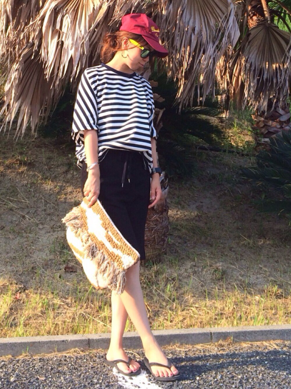 もういっちょ😘 海からあがって、着替えたコーデ💓 ラッフ〜でゆる〜い感じ😁 好き❤️笑 SEVENDAYS=SUNDAYさんのボーダートップス着回しコーデです! これ、本当に色々使えそうだし、着ていて楽チンだしお気に入り✨ それにスエットスカートで本当に楽チン😂❤️笑 連投失礼しました🙇💦