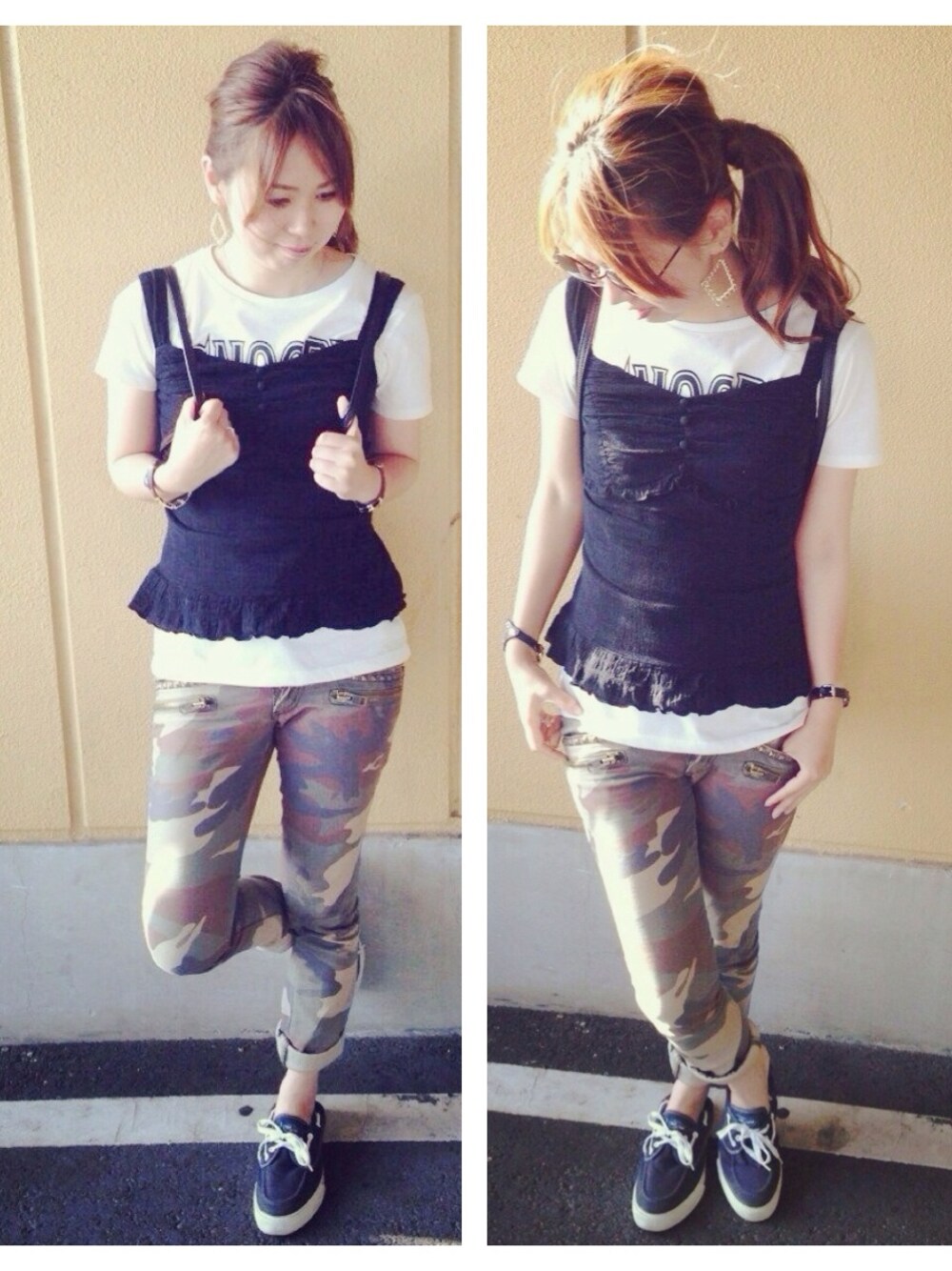 今日も暑かった! 日焼けがしんどい…っ(*_*) 迷彩のパンツでボーイッシュだけど、ビスチェ重ねて女らしさもプラス♥︎